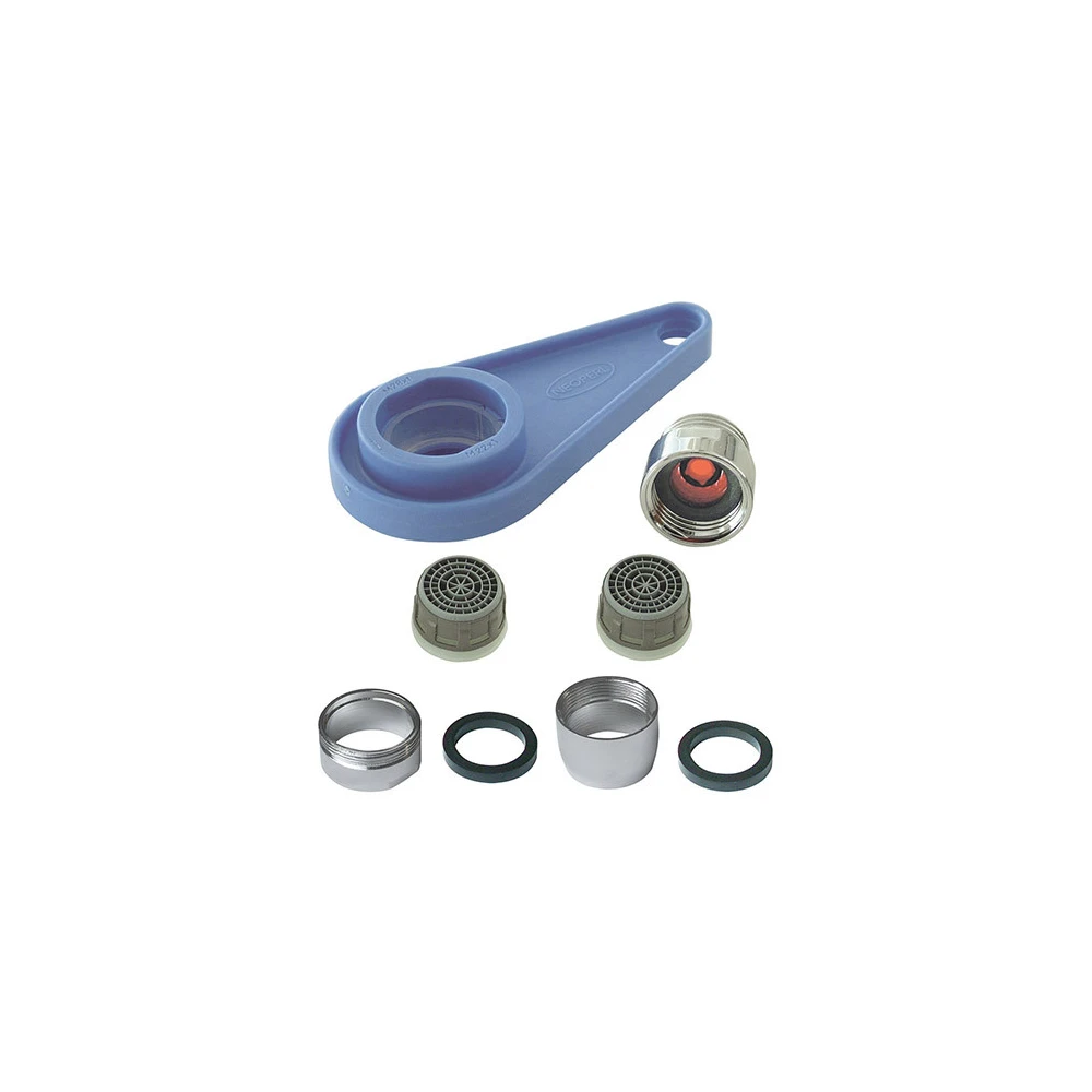 Ce kit complet économie d'eau comprend une clé de démontage, deux recharges (M24 pour lavabo et F22 pour évier) ainsi qu'un limiteur de débit pour douche (12 L/min). Il permet d'optimiser la consommation d'eau tout en conservant un confort d'utilisation idéal. Fabriqué en Europe.
