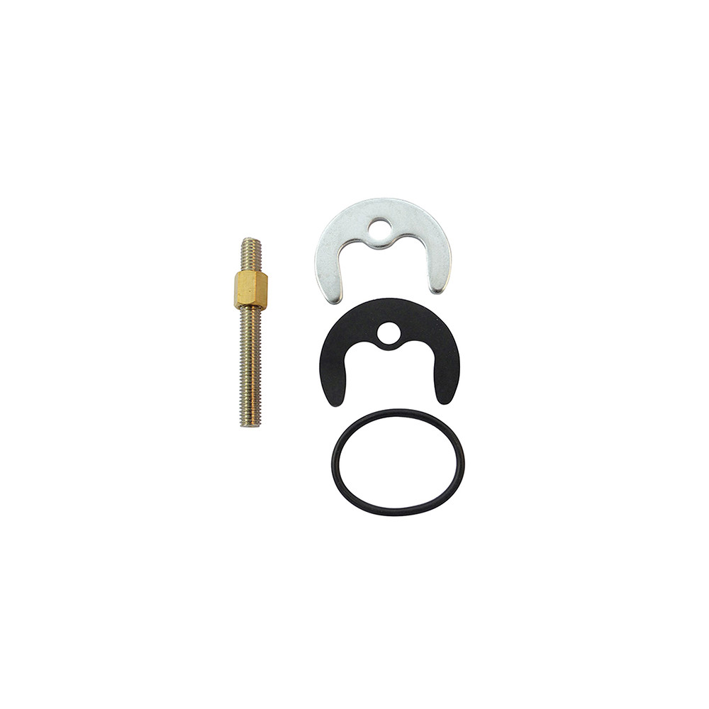 Ce kit de fixation pour robinet comprend une tige filetée, un joint, une rondelle métallique et une rondelle plastique. Compatible avec la majorité des robinets, il assure une installation stable et étanche. Idéal pour le remplacement ou l'entretien de robinetterie.