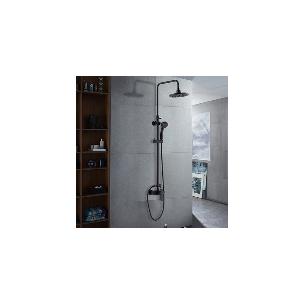 La colonne de douche SHENTI est équipée d'une tête de douche orientable avec picots anti-calcaire pour un entretien facile.