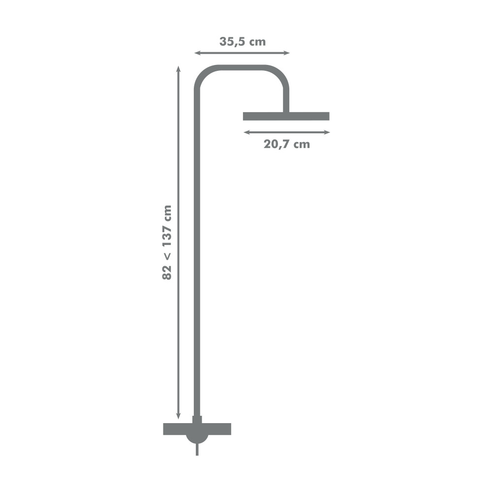Elle dispose d'une douchette 3 jets et d'un flexible en inox chromé. Le bras télescopique et rotatif, avec support de douchette réglable, permet de s'adapter à vos besoins.