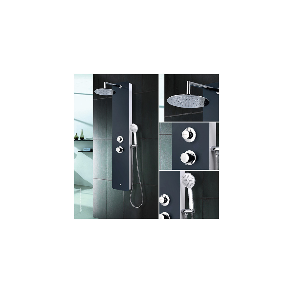 La colonne de douche ERIS allie design sobre et fonctionnalité. Son panneau en verre de sécurité gris anthracite apporte une touche moderne à votre salle de bains.
