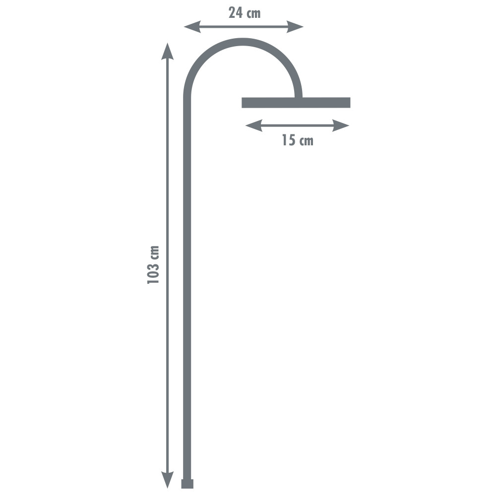 Le bras en inox chromé est équipé d'un support de douchette coulissant et inclinable pour un réglage facile. Les embases murales mobiles facilitent la pose, avec possibilité de réutiliser des trous existants. L'inverseur permet de passer rapidement de la tête de douche à la douchette.