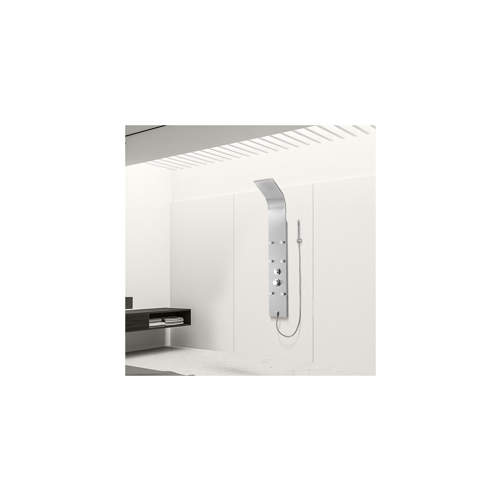 L'inverseur 3 voies permettent de passer facilement entre la tête de douche, la douchette et les buses d'hydromassage. Son mitigeur mécanique est doté d'une seule manette qui permet de régler la température et le débit de l'eau.