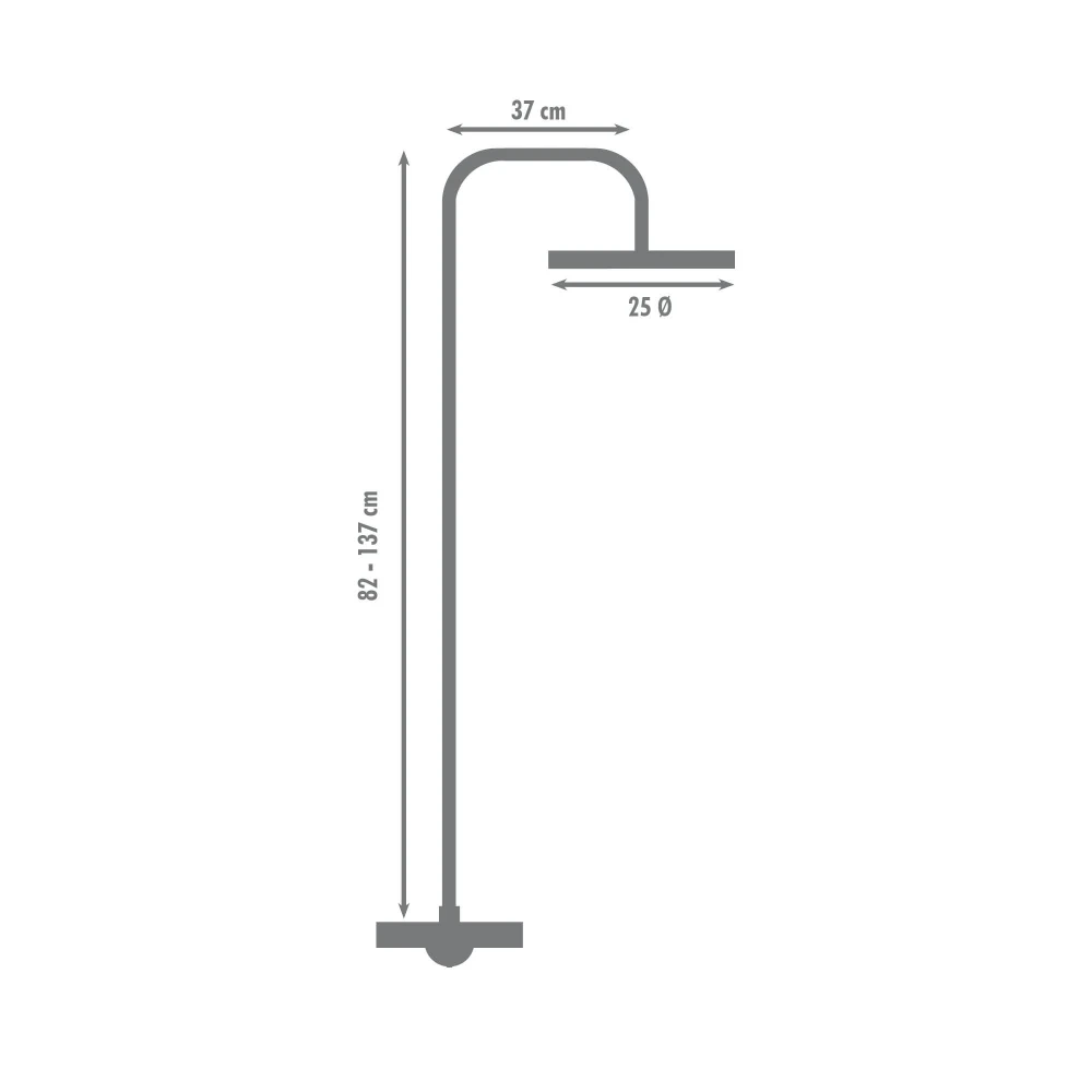 La colonne de douche DEVA est équipée d'une tête orientable Ø250 mm et d'un bras télescopique réglable de 0,82 m à 1,37 m. La fixation murale réglable en hauteur et en profondeur permet de réutiliser les anciens perçages.