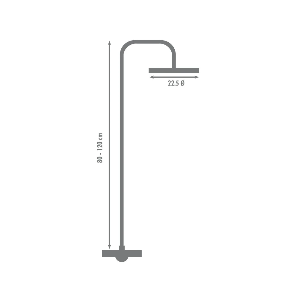La colonne de douche LUEGGO thermostatique est équipée d'une tête de douche orientable de Ø 225 mm qui offre un large jet enveloppant. Dotée de picots anti-calcaire, elle se nettoie facilement d'un simple geste. Le bras de douche télescopique (de 80 à 120 cm) s'ajuste à la hauteur souhaitée et s'installe facilement grâce à son embout mobile et ses cales d'adaptation permettant de s'ajuster aux trous existants.