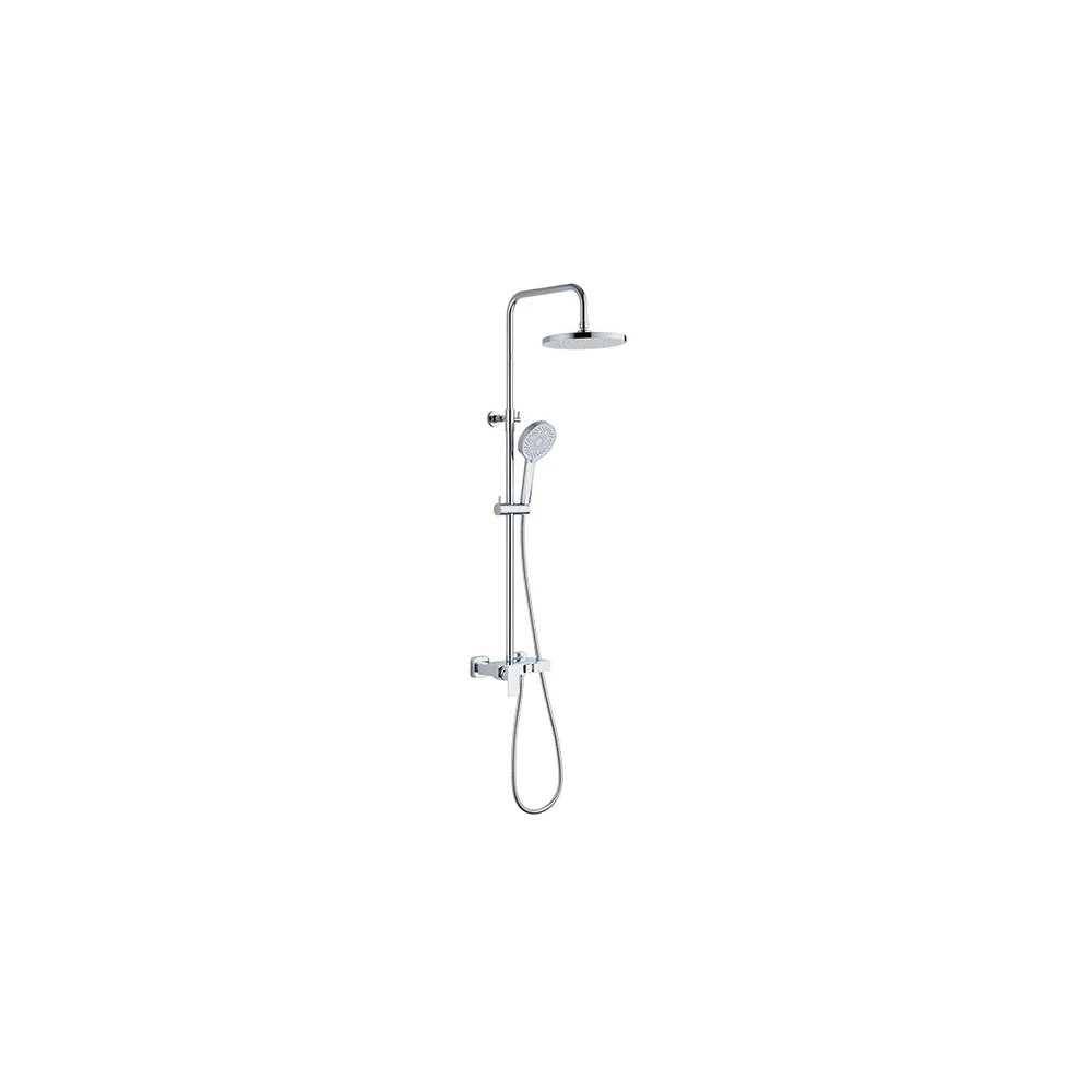 La colonne de douche BUTO est équipée d'une tête de douche orientable et d'une douchette 3 jets, toutes deux avec picots anti-calcaire pour un entretien simplifié.