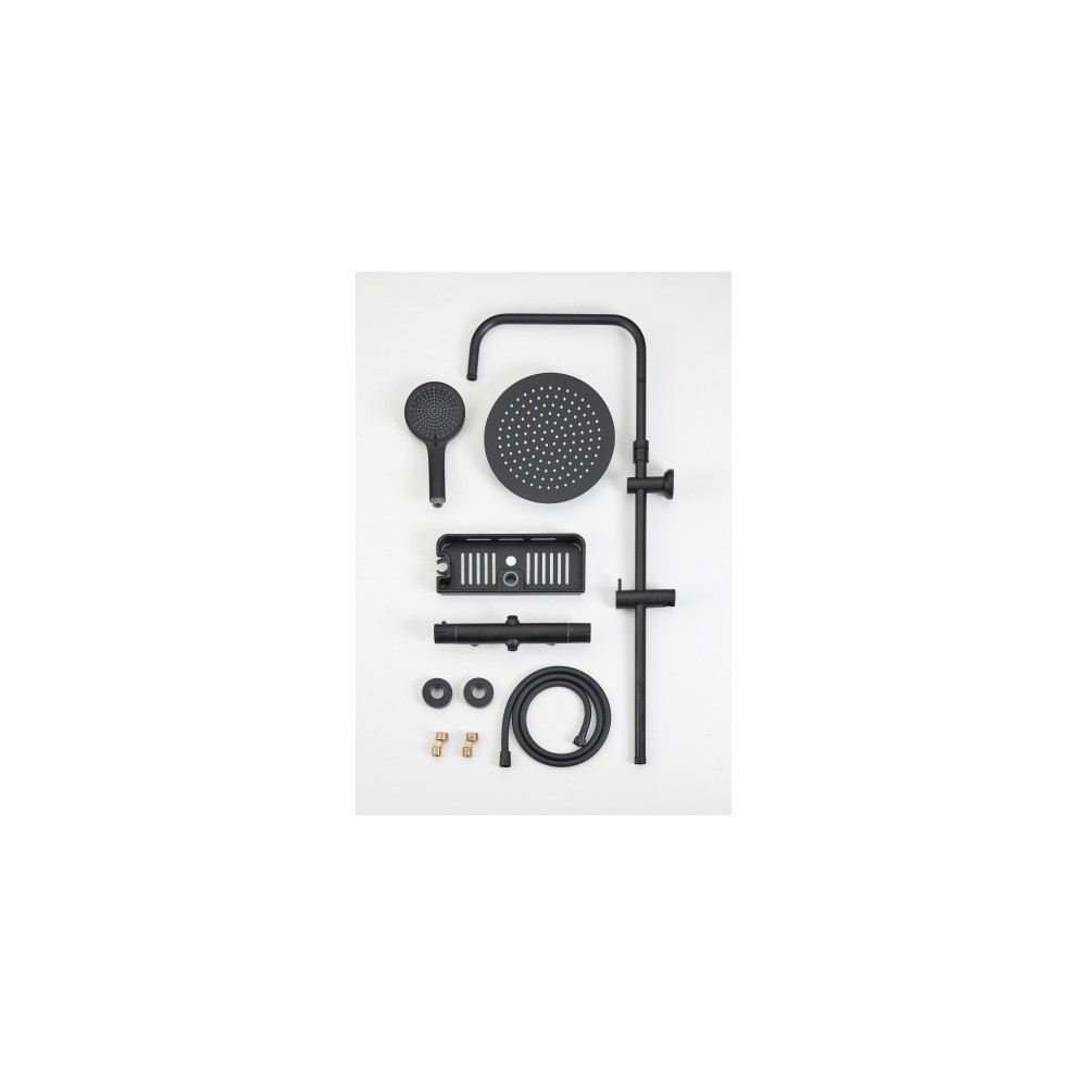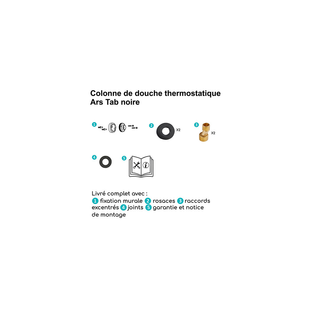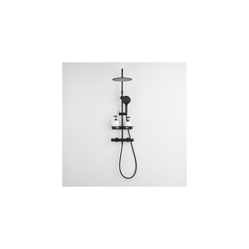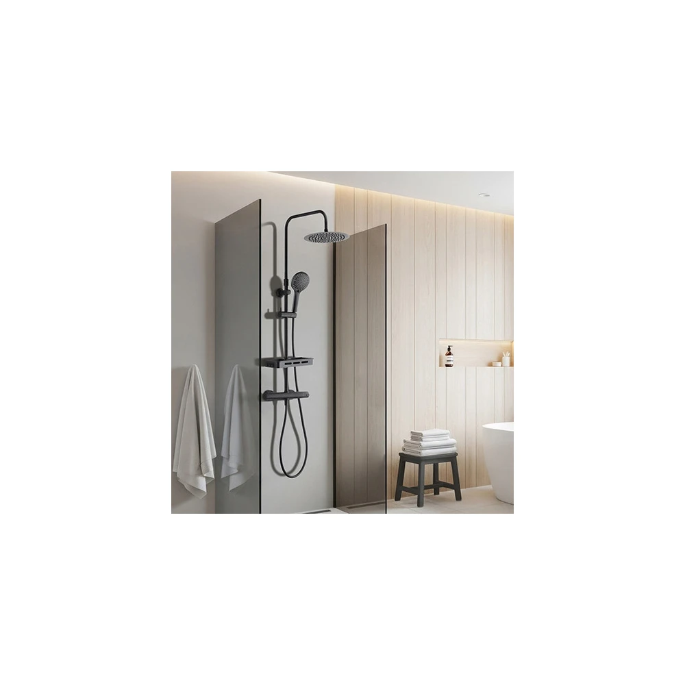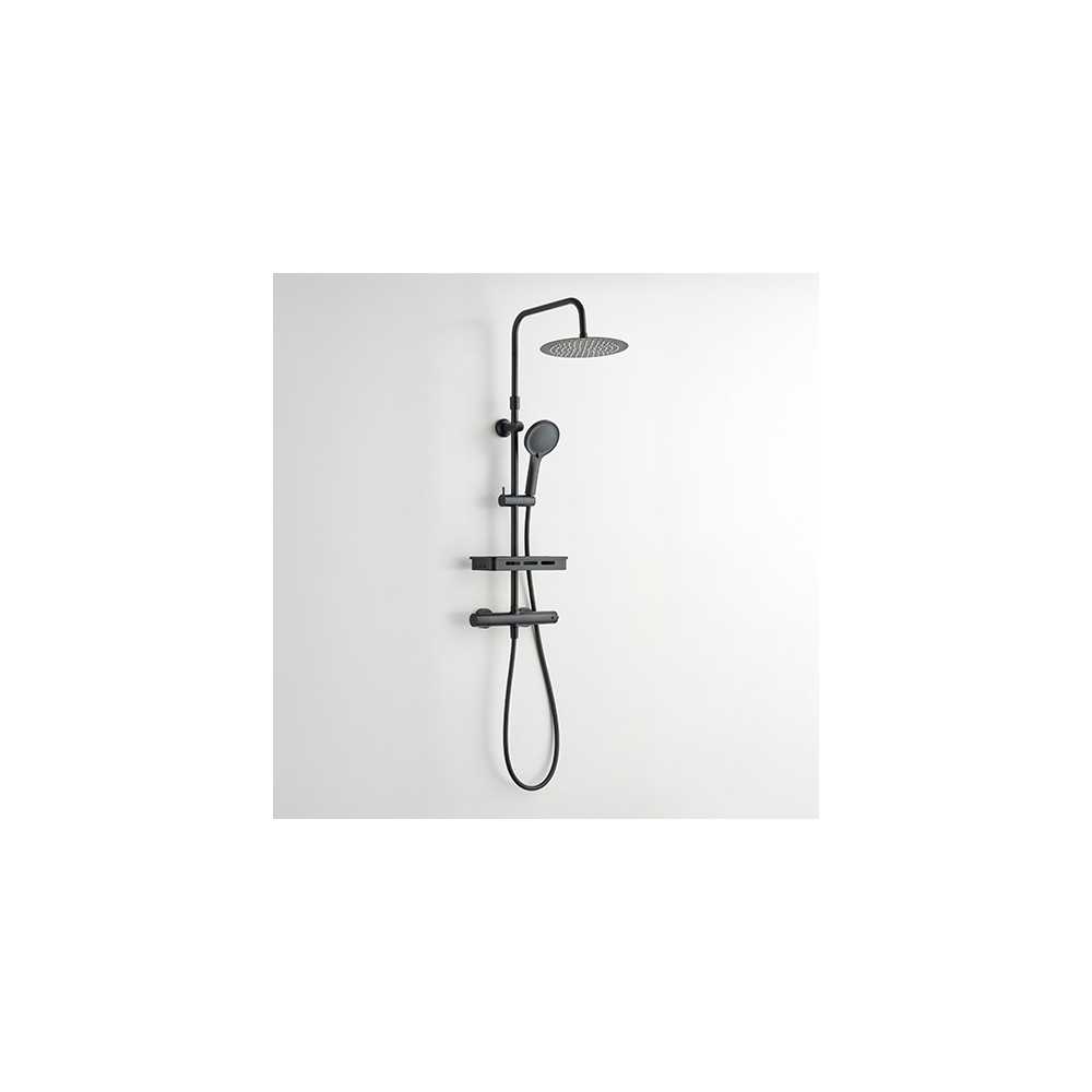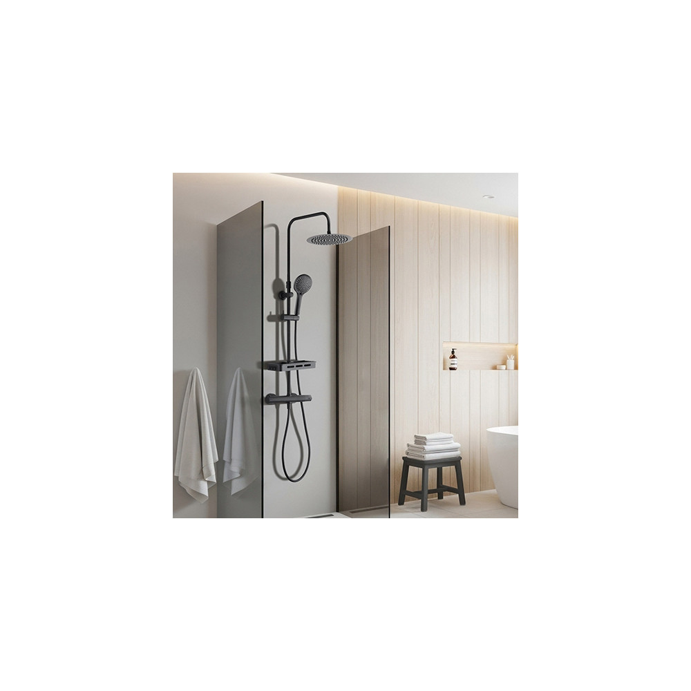La colonne de douche thermostatique ARS TAB est pratique au quotidien, elle intègre une tablette de rangement directement sur le corps de la colonne, idéale pour poser shampoing, gel douche ou accessoires à portée de main, sans perçage supplémentaire.