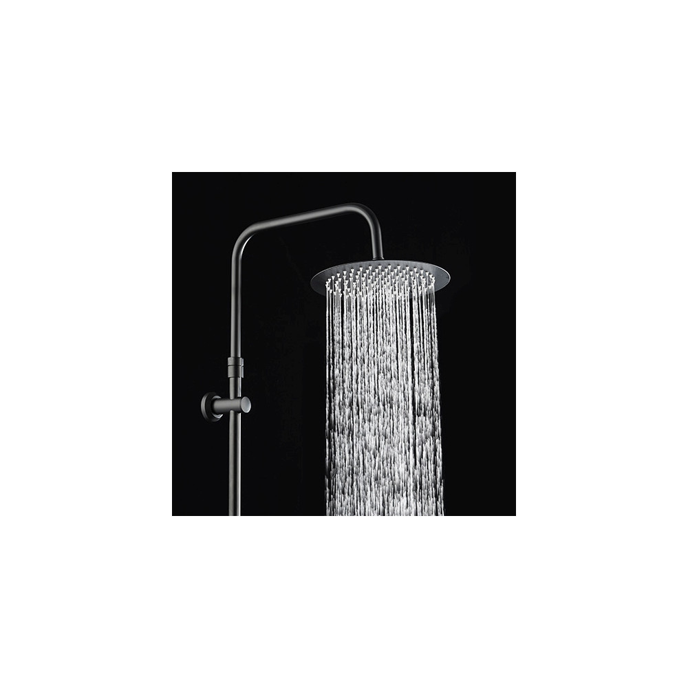 La douchette à main complète l'ensemble avec 3 types de jets, permettant d'adapter le confort selon vos envies. Le flexible PVC chromé lisse de 1,50 m, équipé d'un écrou anti-torsion intégré, assure une durabilité renforcée. La colonne est équipée d'un bras de douche télescopique, permettant un réglage précis de la hauteur. L'embase murale réglable facilite l'installation en compensant les défauts de planéité du mur ou en réutilisant les perçages existants.
