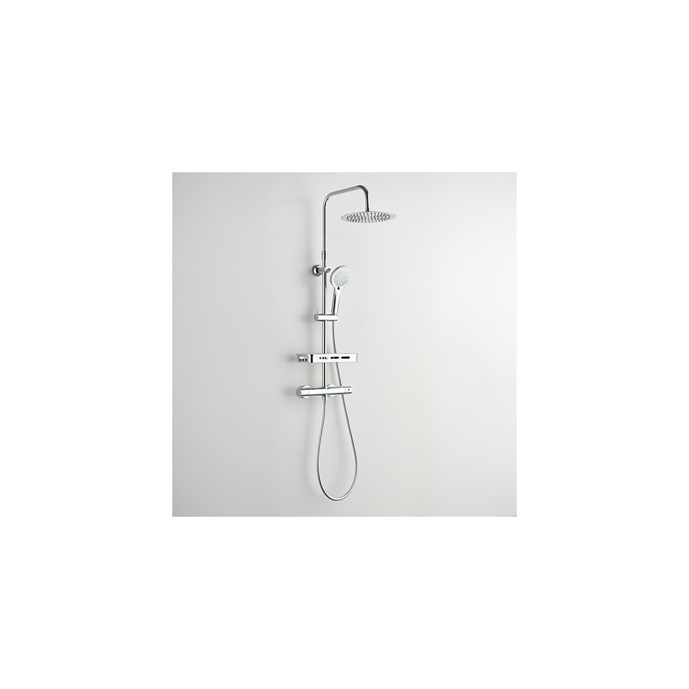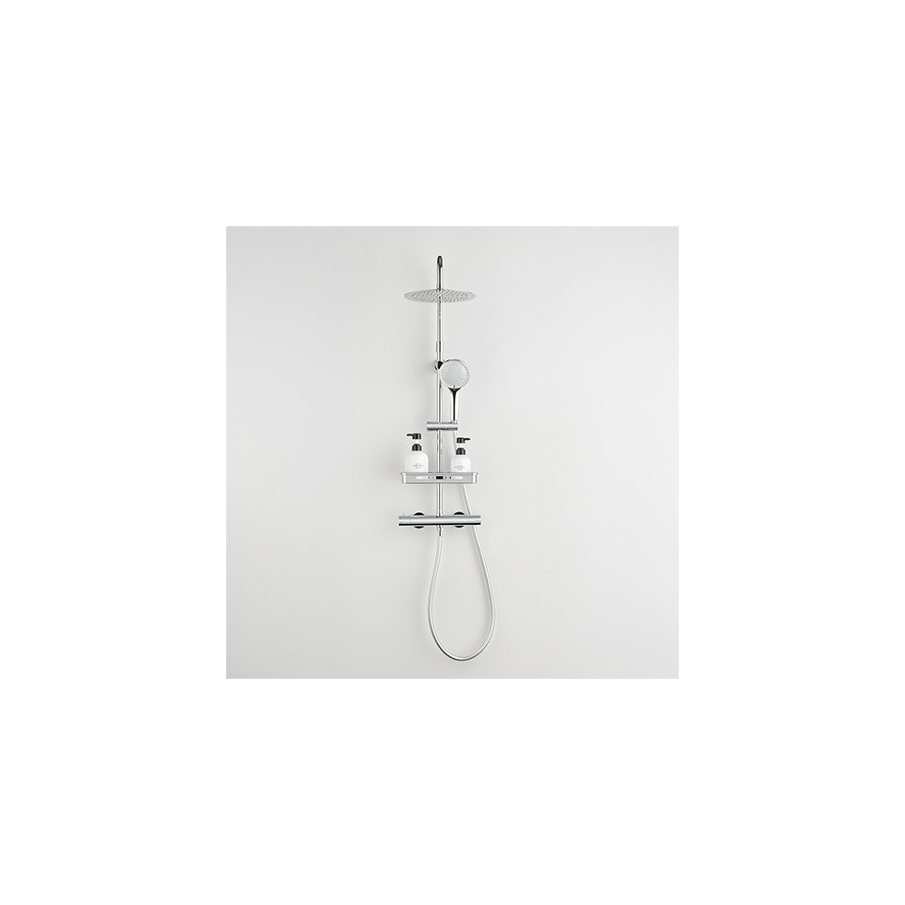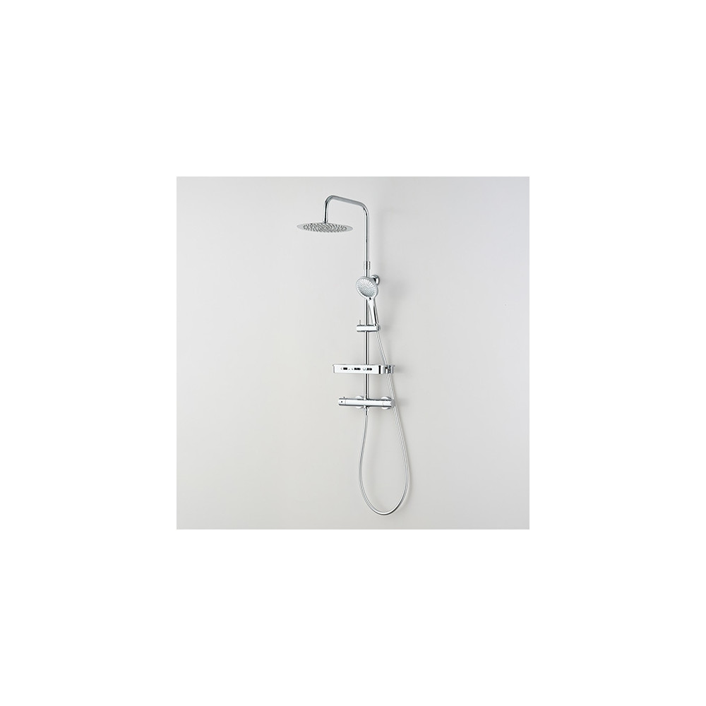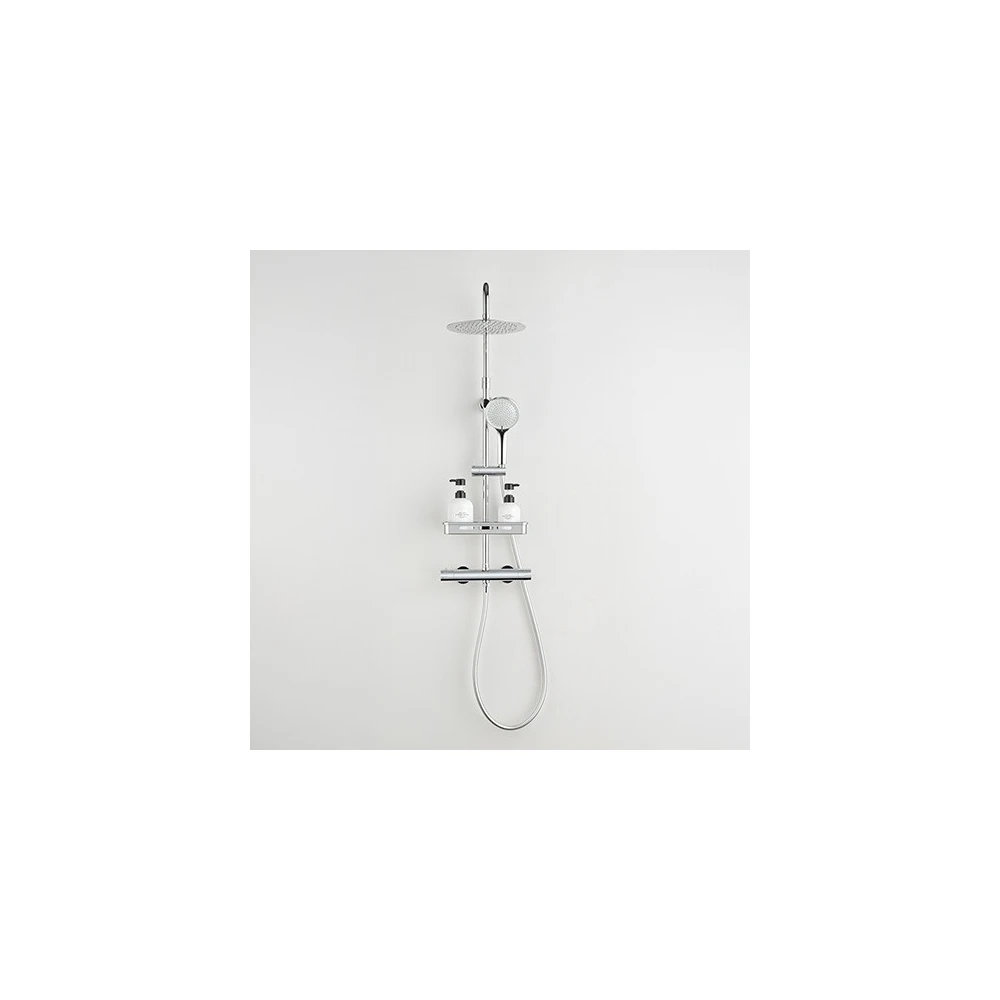 La colonne de douche thermostatique ARS TAB est pratique au quotidien, elle intègre une tablette de rangement directement sur le corps de la colonne, idéale pour poser shampoing, gel douche ou accessoires à portée de main, sans perçage supplémentaire.