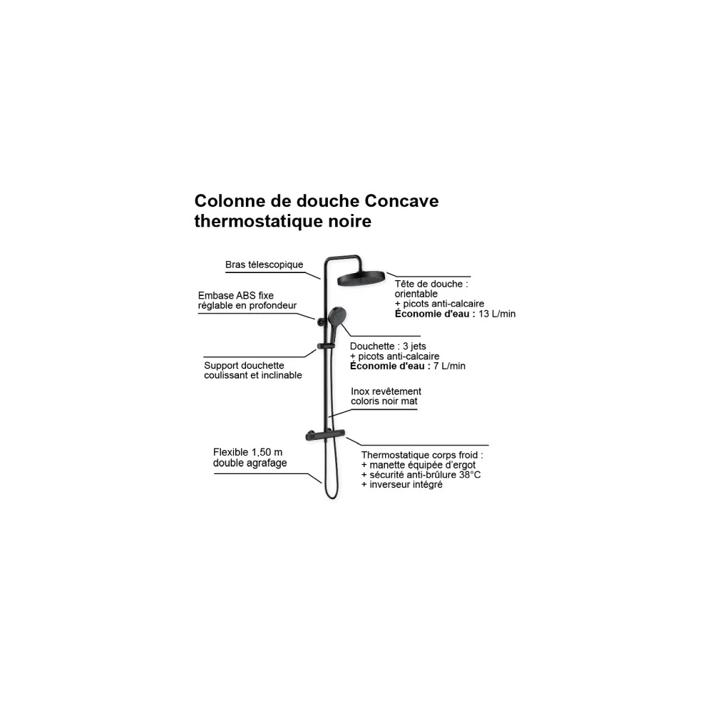 La colonne CONCAVE est adaptée à toute production d'eau chaude. En cas de chauffe-eau instantané, il est nécessaire de disposer de pressions et débits équilibrés entre eau froide et eau chaude, ainsi que d'une puissance minimale de chaudière de 18 kW (250 kcal/min) pour garantir un fonctionnement optimal du thermostatique.