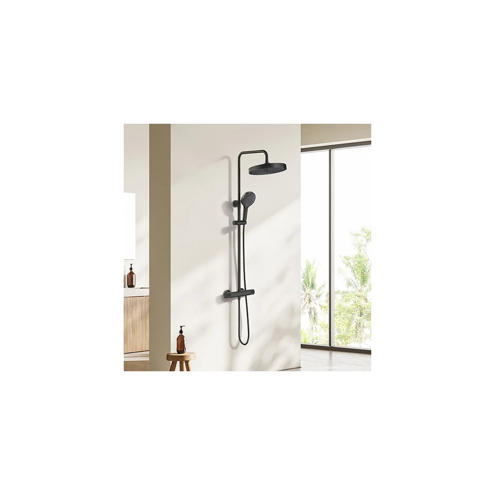 La colonne de douche thermostatique CONCAVE est équipée d'une large tête de douche orientable, dotée de picots souples anti-calcaire pour un entretien facile. Elle propose 2 types de jets pour adapter le confort de douche selon vos envies.