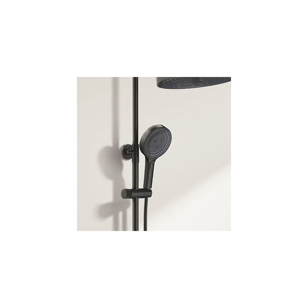 Conçue pour réduire la consommation d'eau, la colonne est équipée de dispositifs d'économie d'eau : débit de la tête de douche limité à 13 L/min et débit de la douchette limité à 7 L/min, sans perte de confort.