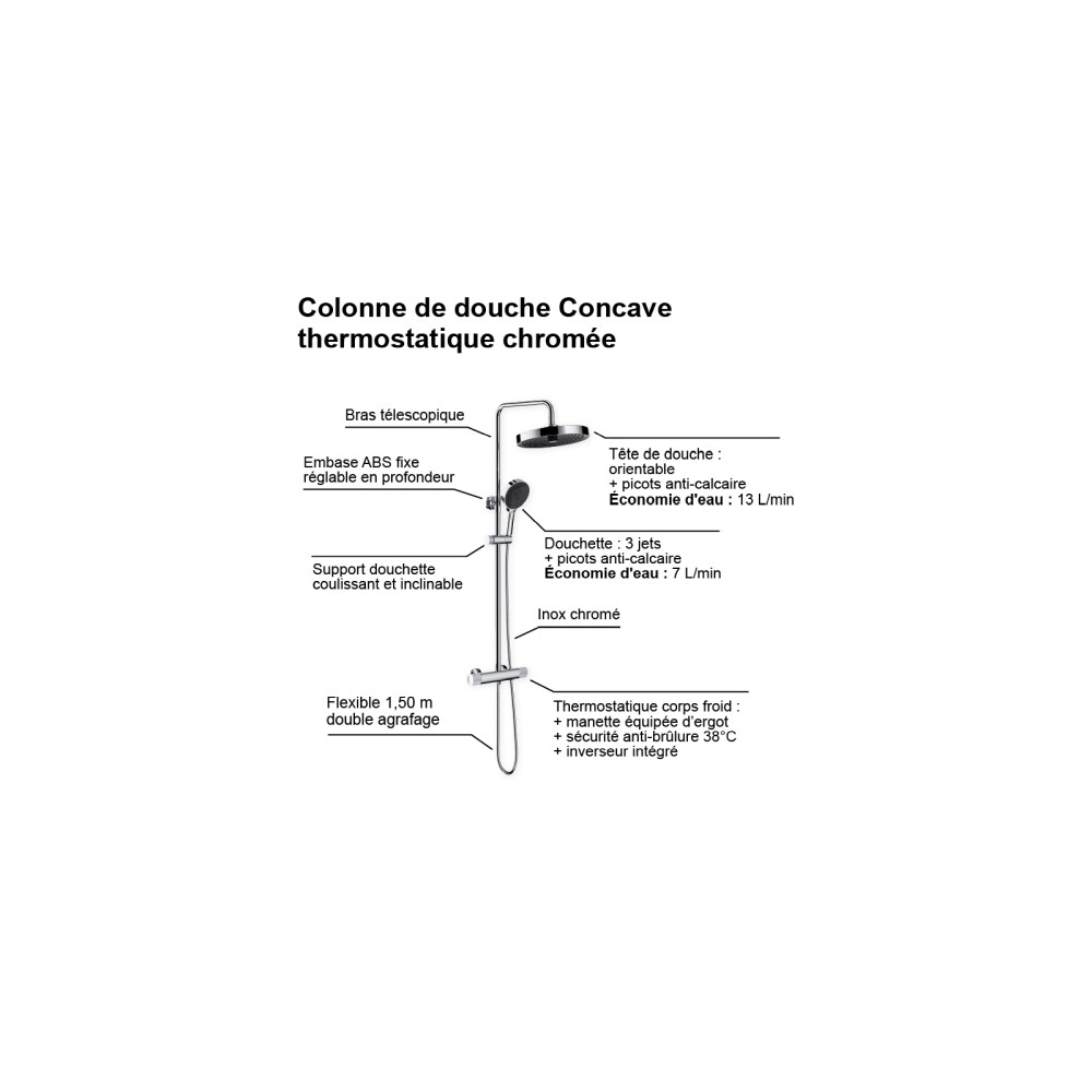 Colonne de douche thermostatique CONCAVE