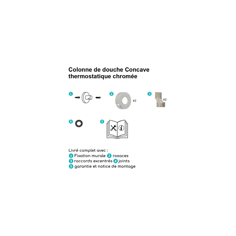 La colonne CONCAVE est adaptée à toute production d'eau chaude. En cas de chauffe-eau instantané, il est nécessaire de disposer de pressions et débits équilibrés entre eau froide et eau chaude, ainsi que d'une puissance minimale de chaudière de 18 kW (250 kcal/min) pour garantir un fonctionnement optimal du thermostatique.