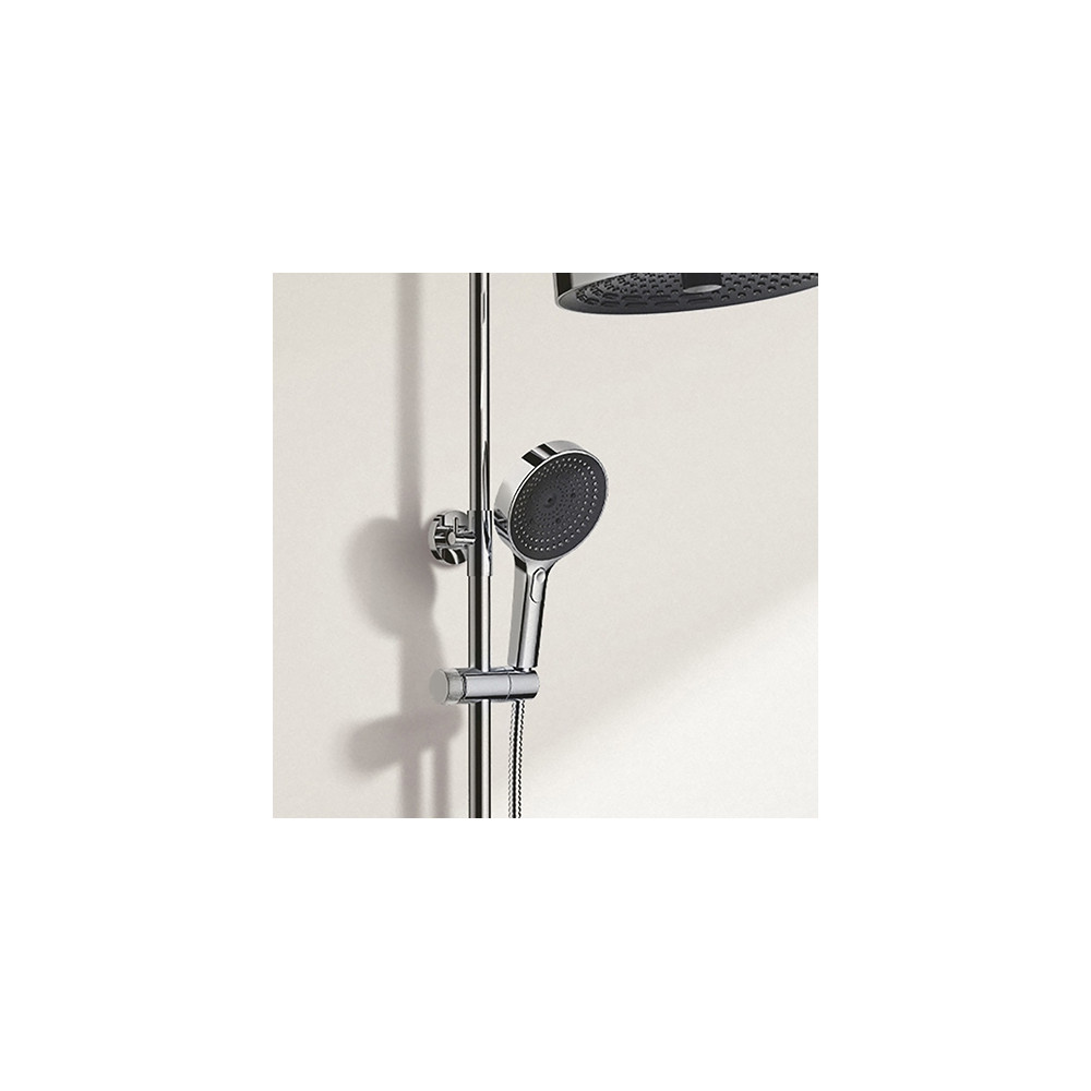 Conçue pour réduire la consommation d'eau, la colonne est équipée de dispositifs d'économie d'eau : débit de la tête de douche limité à 13 L/min et débit de la douchette limité à 7 L/min, sans perte de confort.