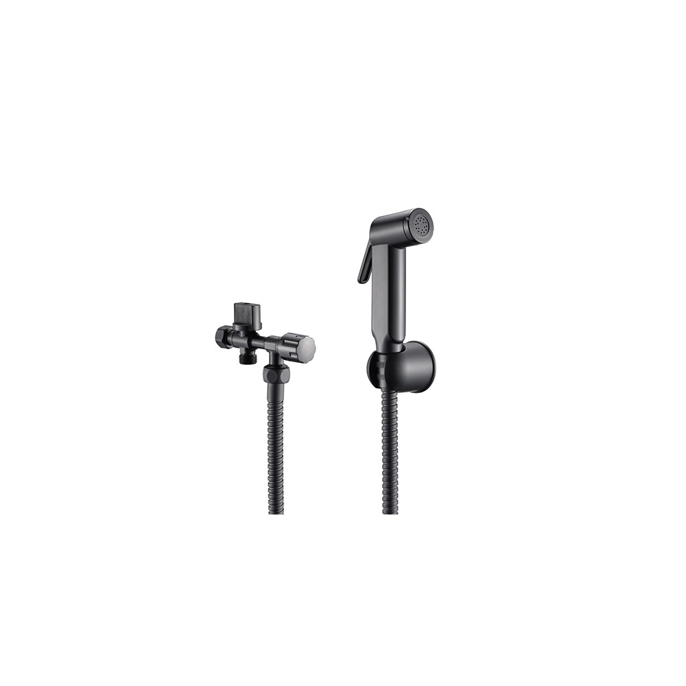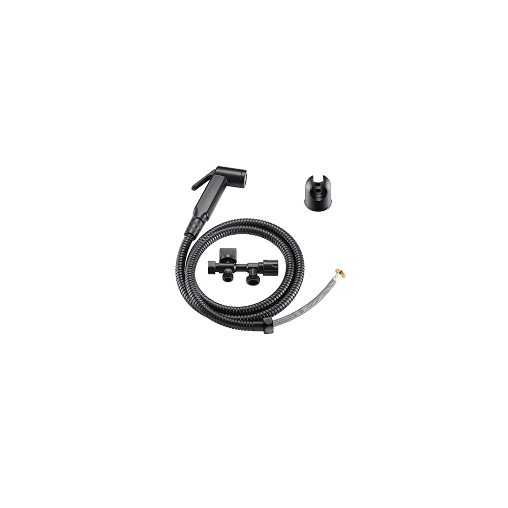 Le kit hygiène WC est destiné aux réservoirs de WC apparents. Il comprend une douchette manuelle, un flexible, un support mural et un robinet d'arrêt trois voies.