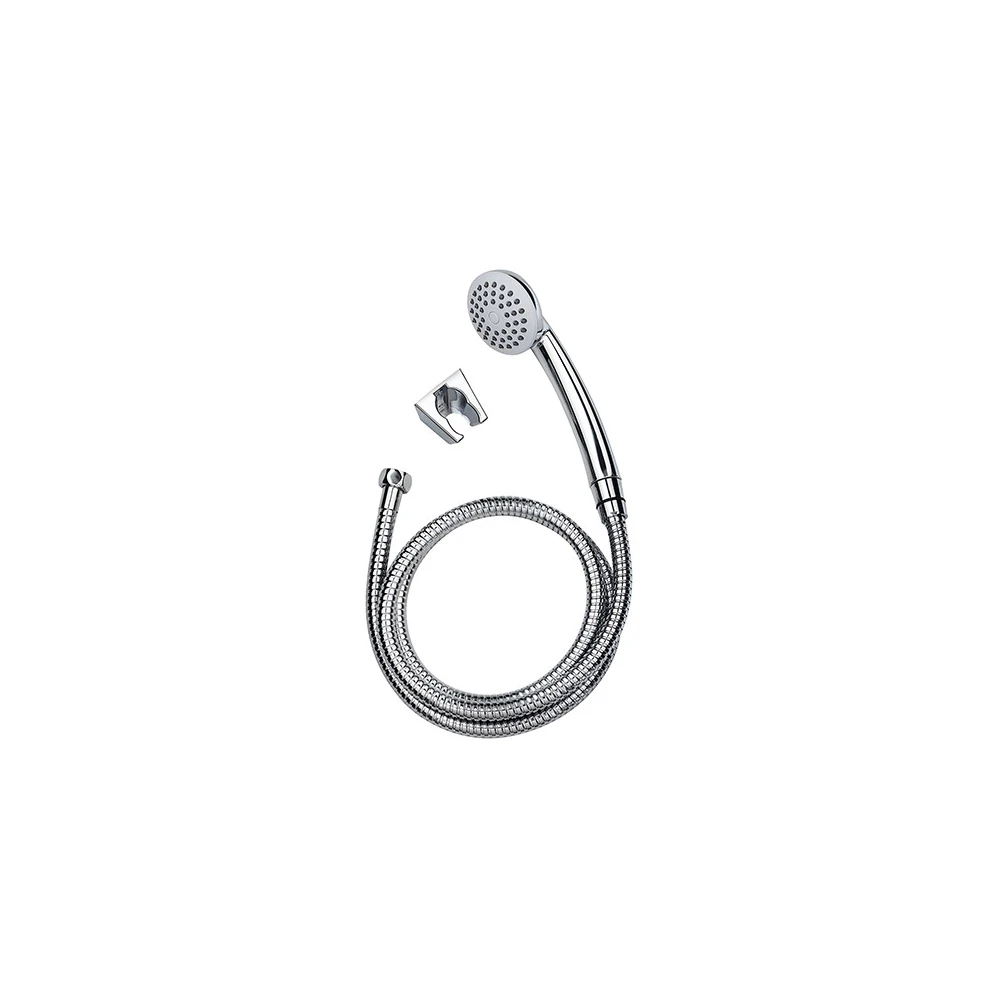 Le combiné de douche NESSY 1 jet offre un jet pluie régulier et confortable, idéal pour un usage quotidien. Ses picots anti-calcaire garantissent une hygiène durable. Livré avec support mural, flexible inox 1,50 m et joints, il est compatible avec les raccords standards (15x21).