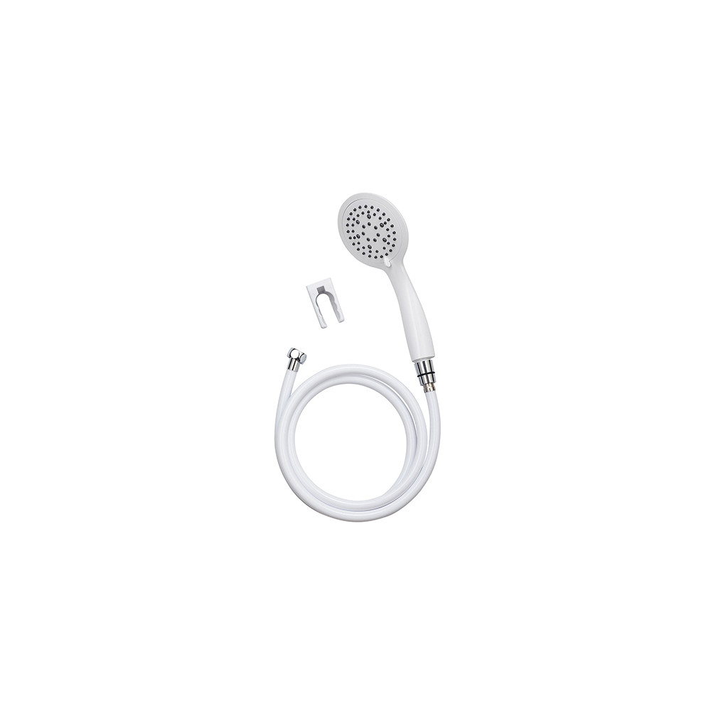 Livré complet avec flexible PVC de 1,50 m, support mural trois positions et joints. Compatible avec les raccords standards (15x21).