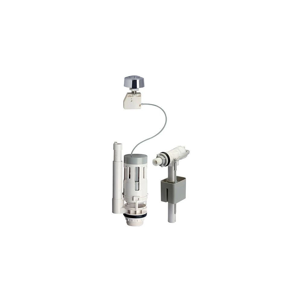L'ensemble mécanisme de chasse avec robinet flotteur est conçu pour équiper les réservoirs de WC. Le mécanisme est à câble avec bouton poussoir double débit 3/6 litres.