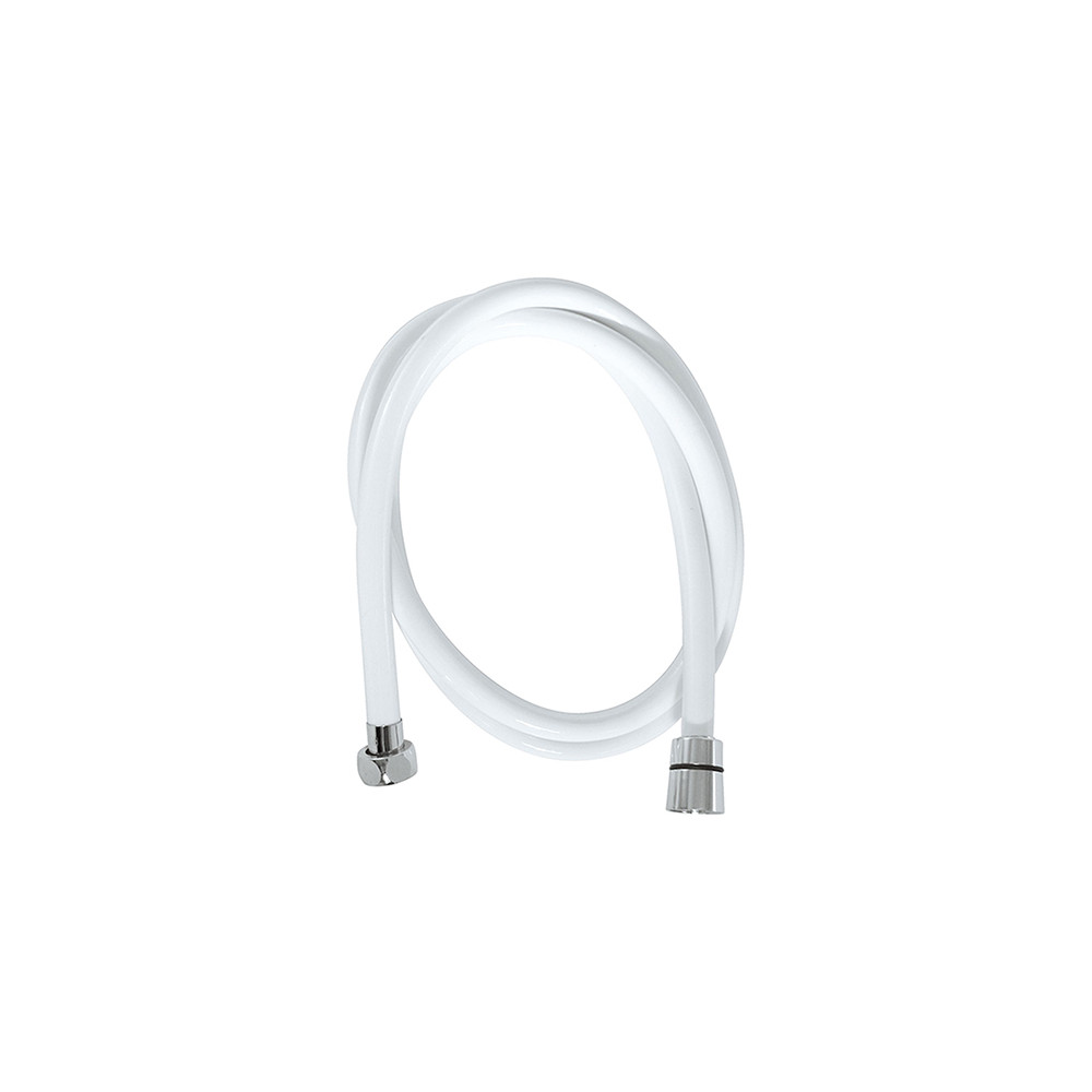 Flexible de douche lisse en pvc blanc 1,50 m, maniable et compatible filetage f1/2 (15x21).