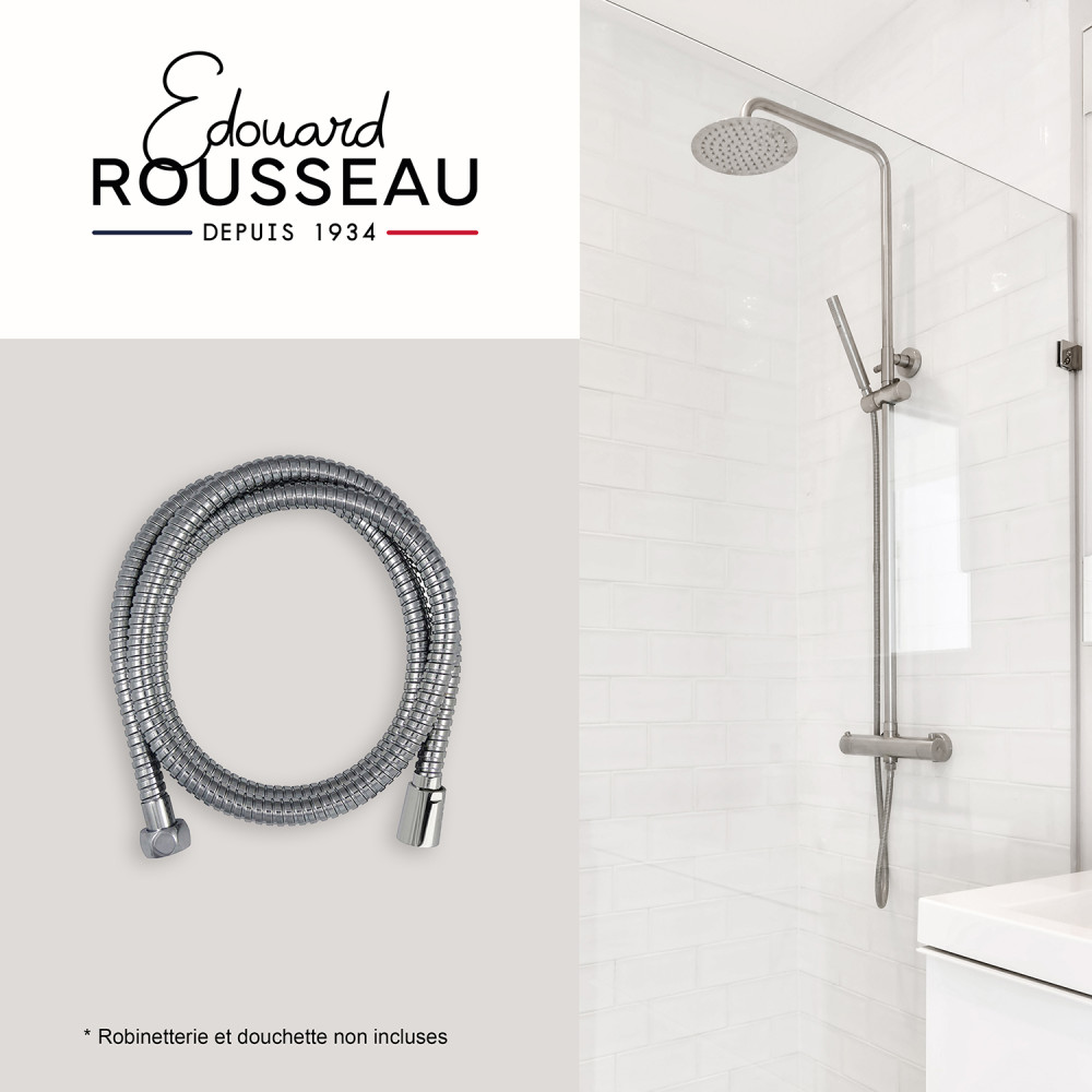 Le flexible de douche double agrafage 2 m est conçu en inox chromé. Son système anti-torsion empêche le tuyau de s'enrouler pour un usage plus fluide et durable.