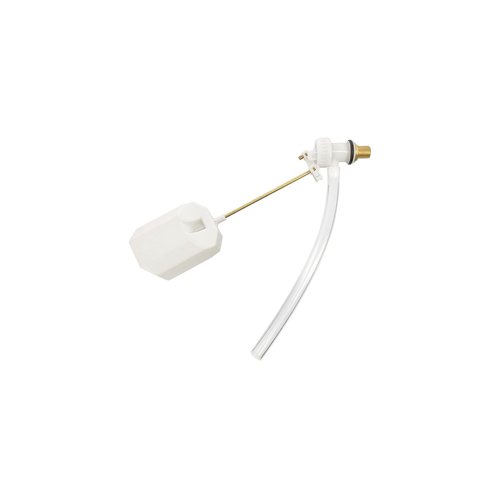 Le réglage du niveau d'eau se fait facilement par inclinaison de la tige du flotteur. Fabriqué en plastique avec tube laiton et tige métal, il résiste durablement à la pression (0,5 à 6 bars). Dimensions : H270 x L65 x P70 mm, longueur de tige 150 à 200 mm.