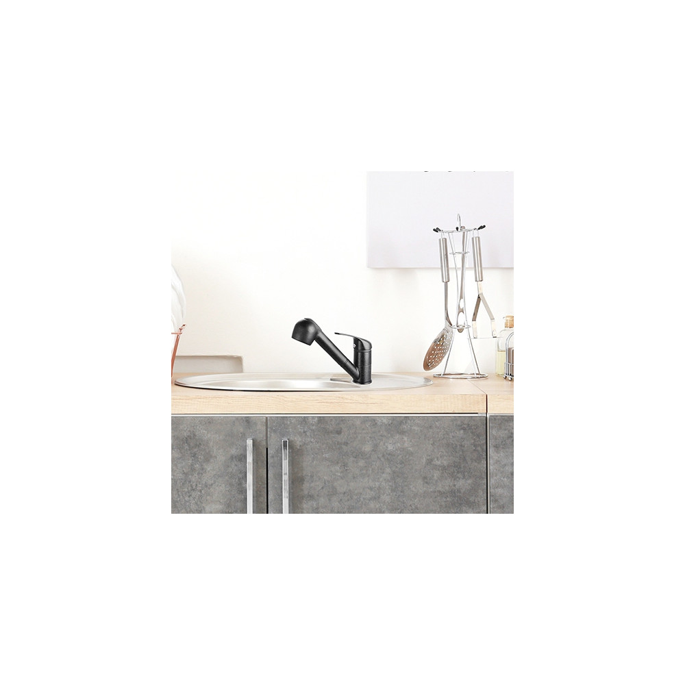 Il dispose d'un bec douchette extractible à 2 jets avec flexible de 1,20 m renforcé, pratique pour le rinçage et le nettoyage.