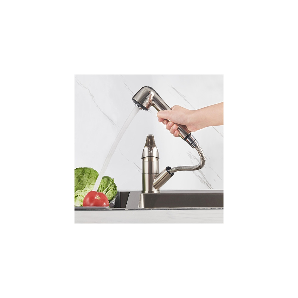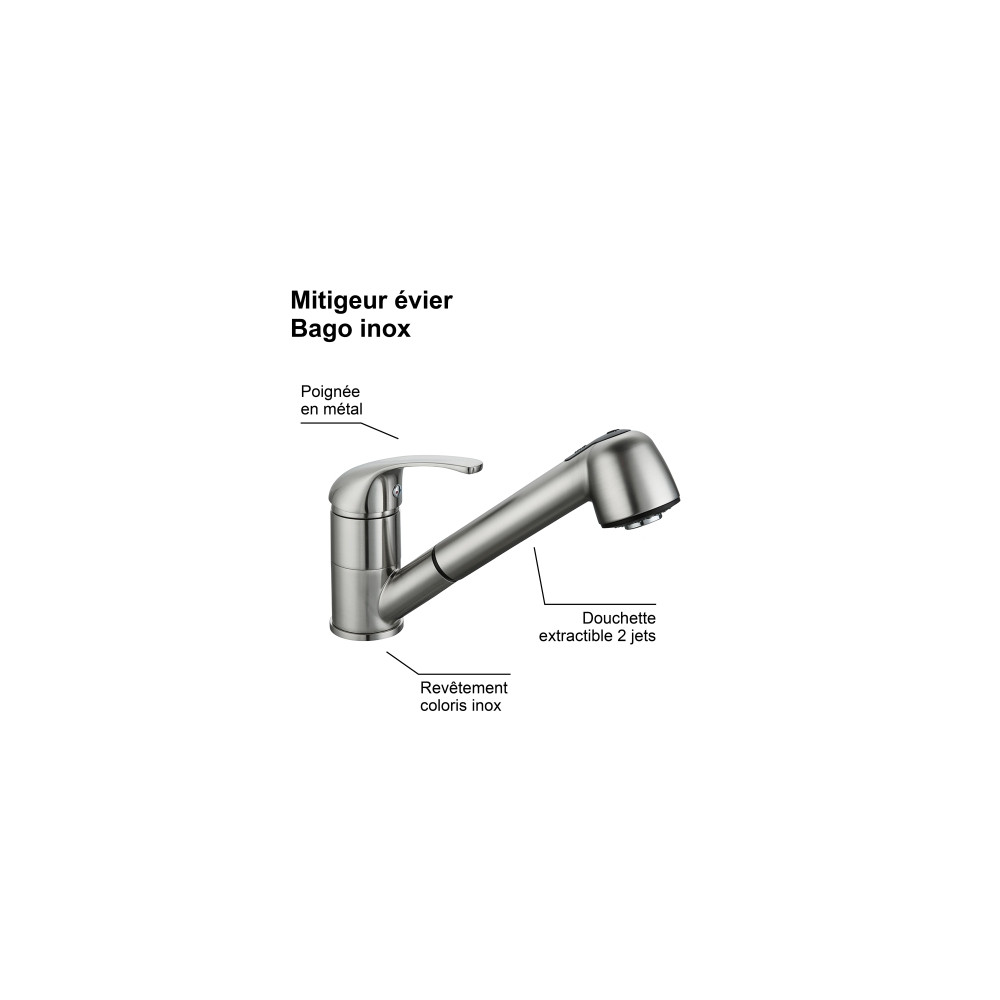 Il dispose d'un bec douchette extractible à 2 jets avec flexible de 1,20 m renforcé, pratique pour le rinçage et le nettoyage.