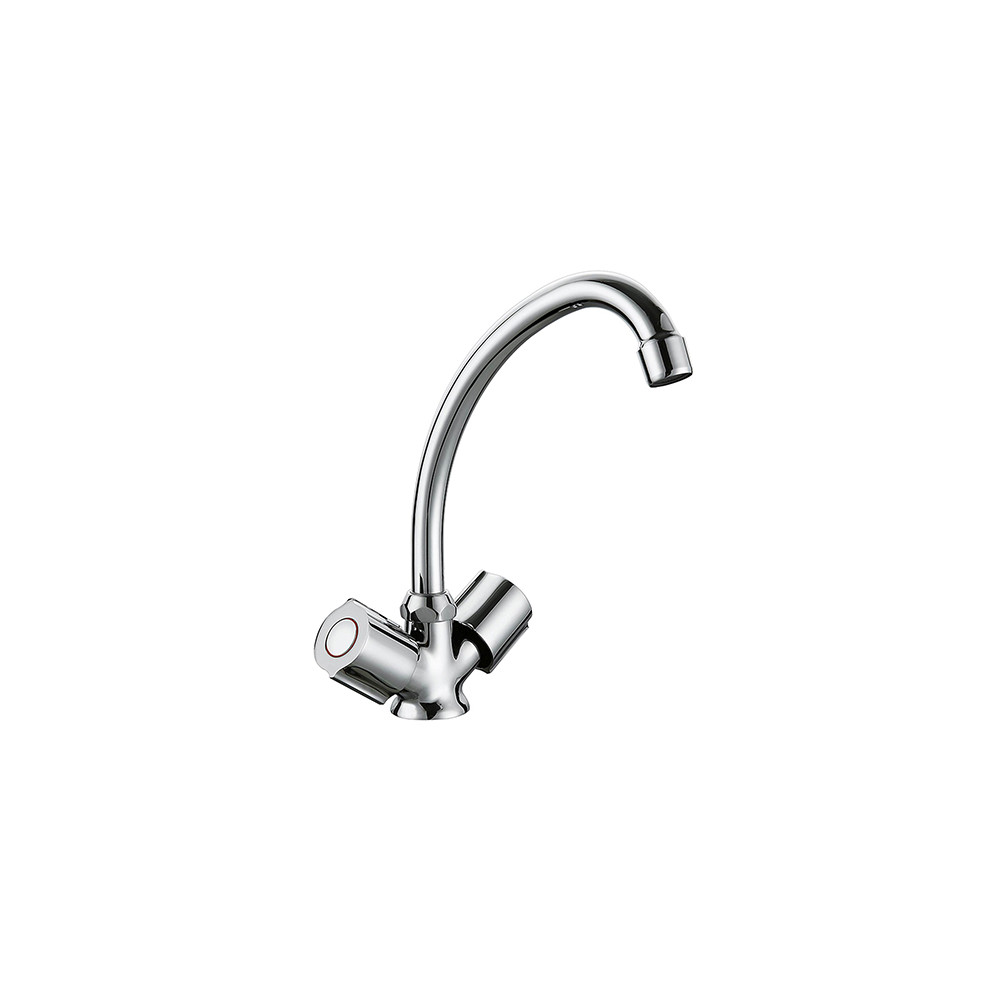 Le mélangeur évier IBIZA 3 à bec haut est équipé de deux poignées à têtes céramiques 1/2 tour, permettant un réglage séparé de l'eau chaude et de l'eau froide.