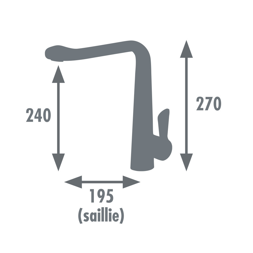 Le mitigeur évier LASTING à bec haut est équipé d'une cartouche céramique diamètre 35 mm. Il est doté d'une poignée en métal latérale qui permet de régler la température et le débit de l'eau.<