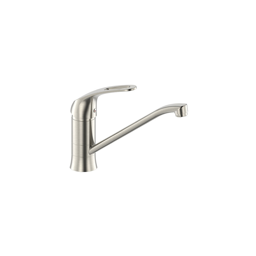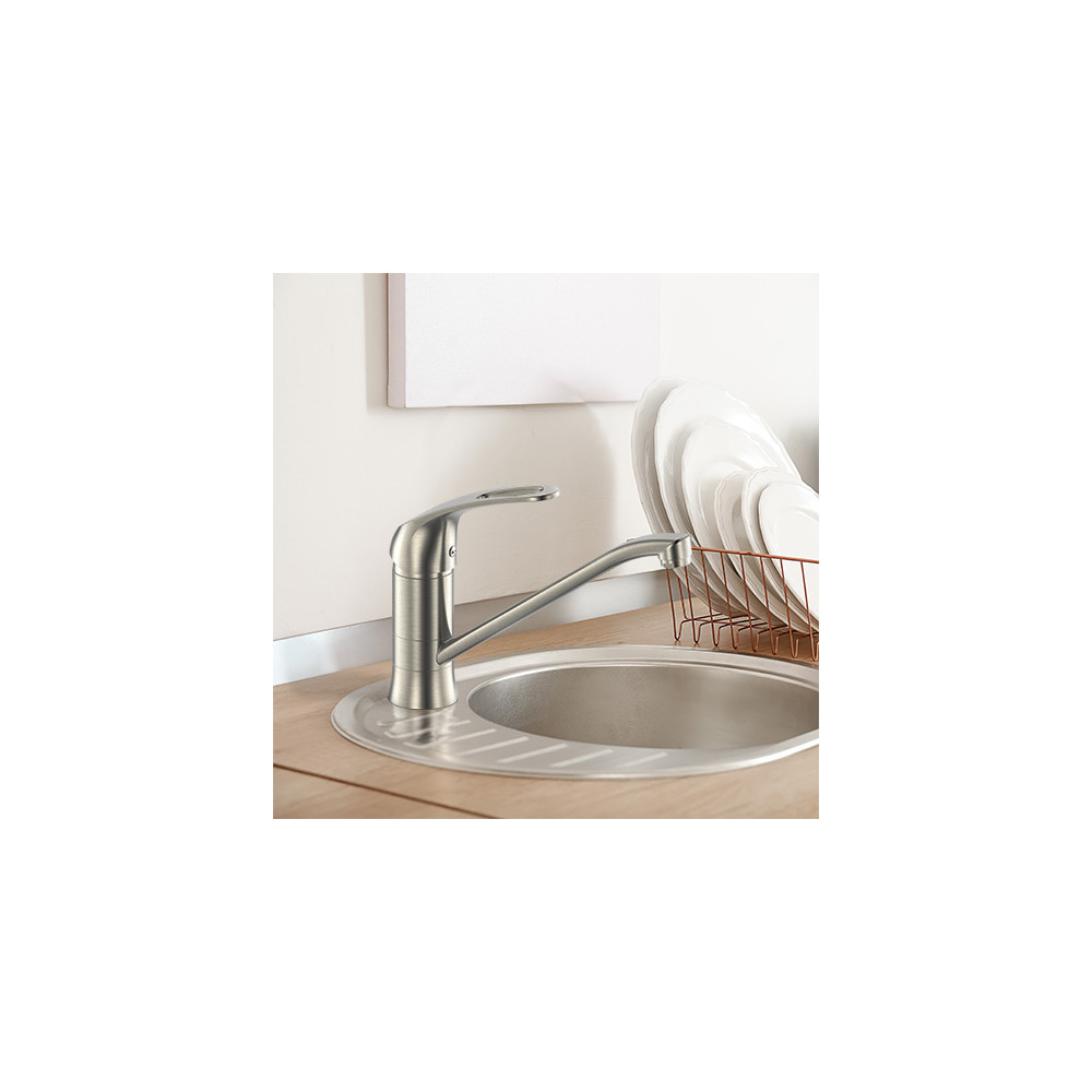 Le mitigeur évier SAWYER à bec bas intègre une cartouche céramique diamètre 40 mm. Sa poignée ajourée assure le réglage de la température et du débit de l'eau.