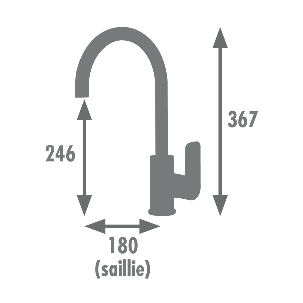Le mitigeur évier MILK à bec haut est équipé d'une cartouche céramique diamètre 35 mm. Il est doté d'une seule poignée qui permet de régler la température et le débit de l'eau.