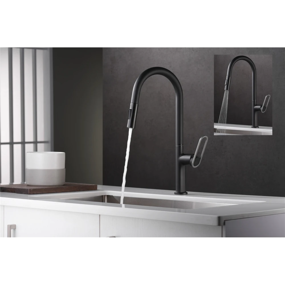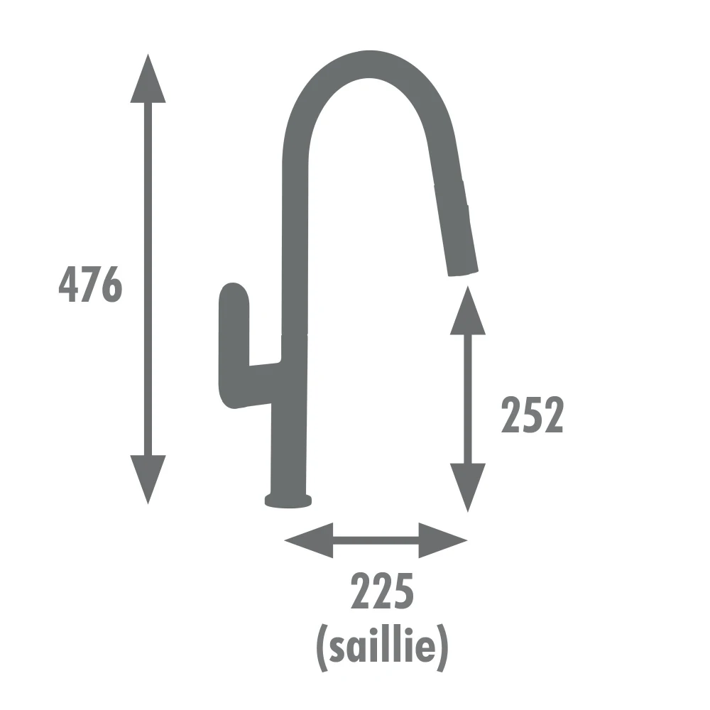 Son bec mobile est équipé d'un bec douchette extractible à deux jets (pluie et aéré), il facilite le rinçage et le nettoyage. Le flexible nylon mesure 150 cm. L'embase mesure 50 mm de diamètre. Installation facile grâce à son écrou de serrage rapide.