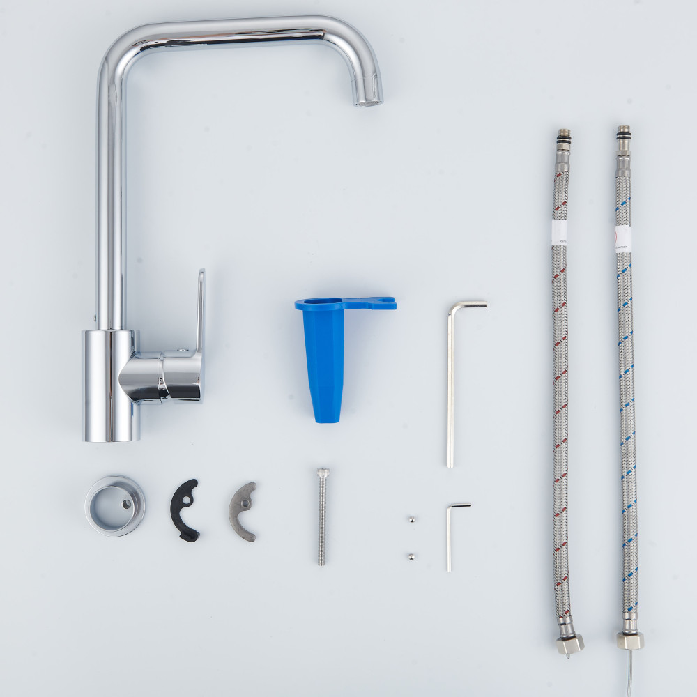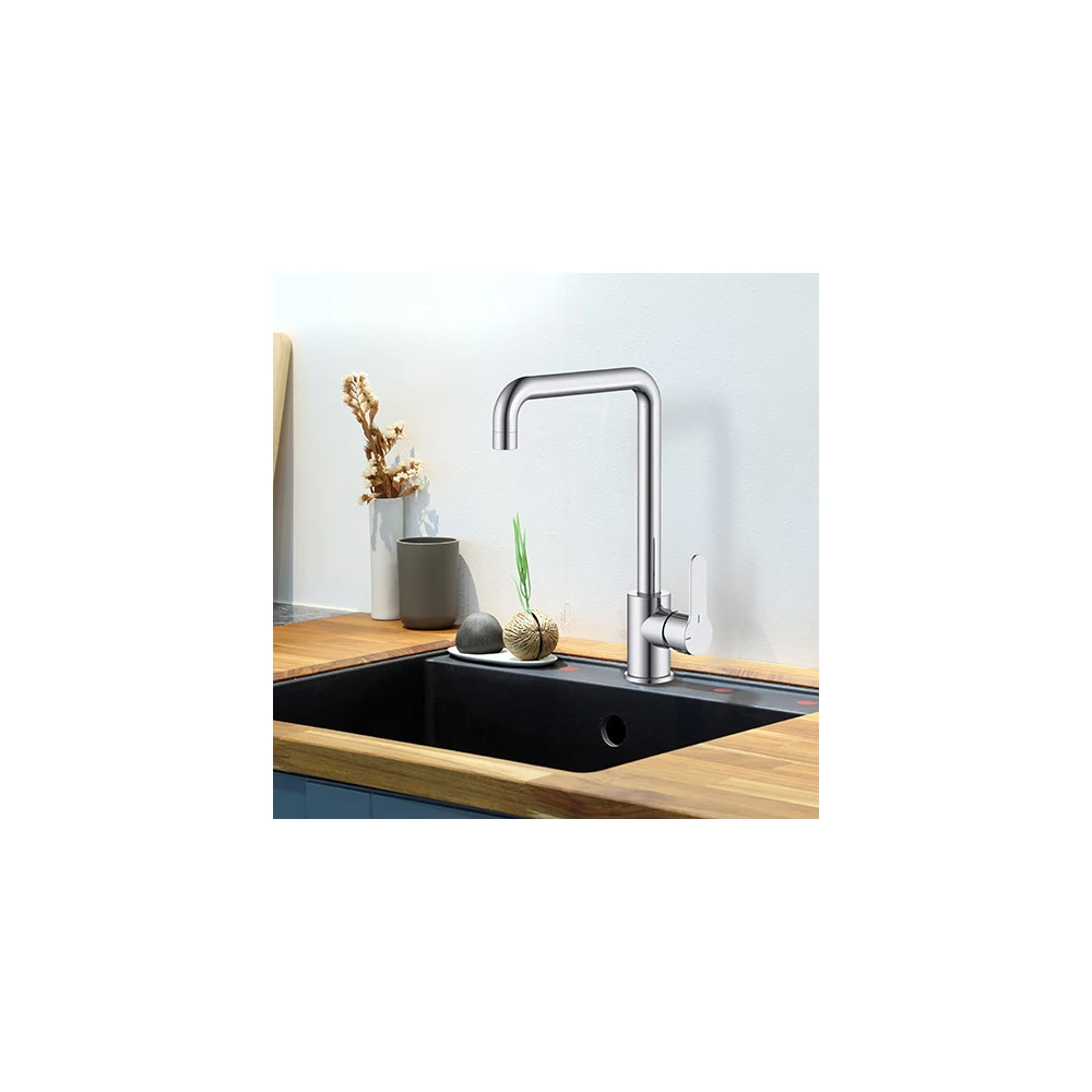 Le mitigeur évier GRIBS RAPIDFIX à bec haut carré est équipé d'une cartouche céramique, il est doté d'une seule poignée qui permet de régler la température et le débit de l'eau.