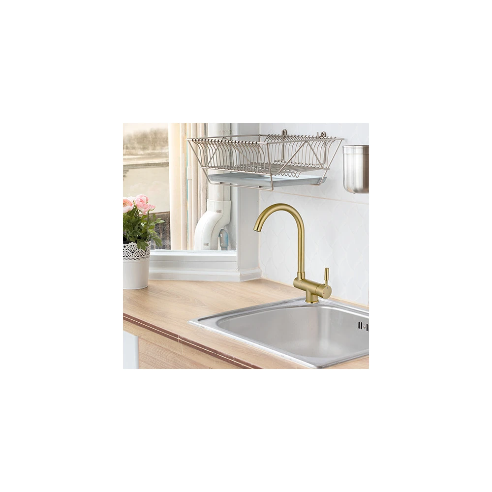 Il est doté d'une poignée latérale pour un réglage précis du débit et de la température. Son bec haut et rabattable (hauteur pliée 7 cm) est idéal pour les éviers placés devant une fenêtre, facilitant la manipulation et l'entretien au quotidien.