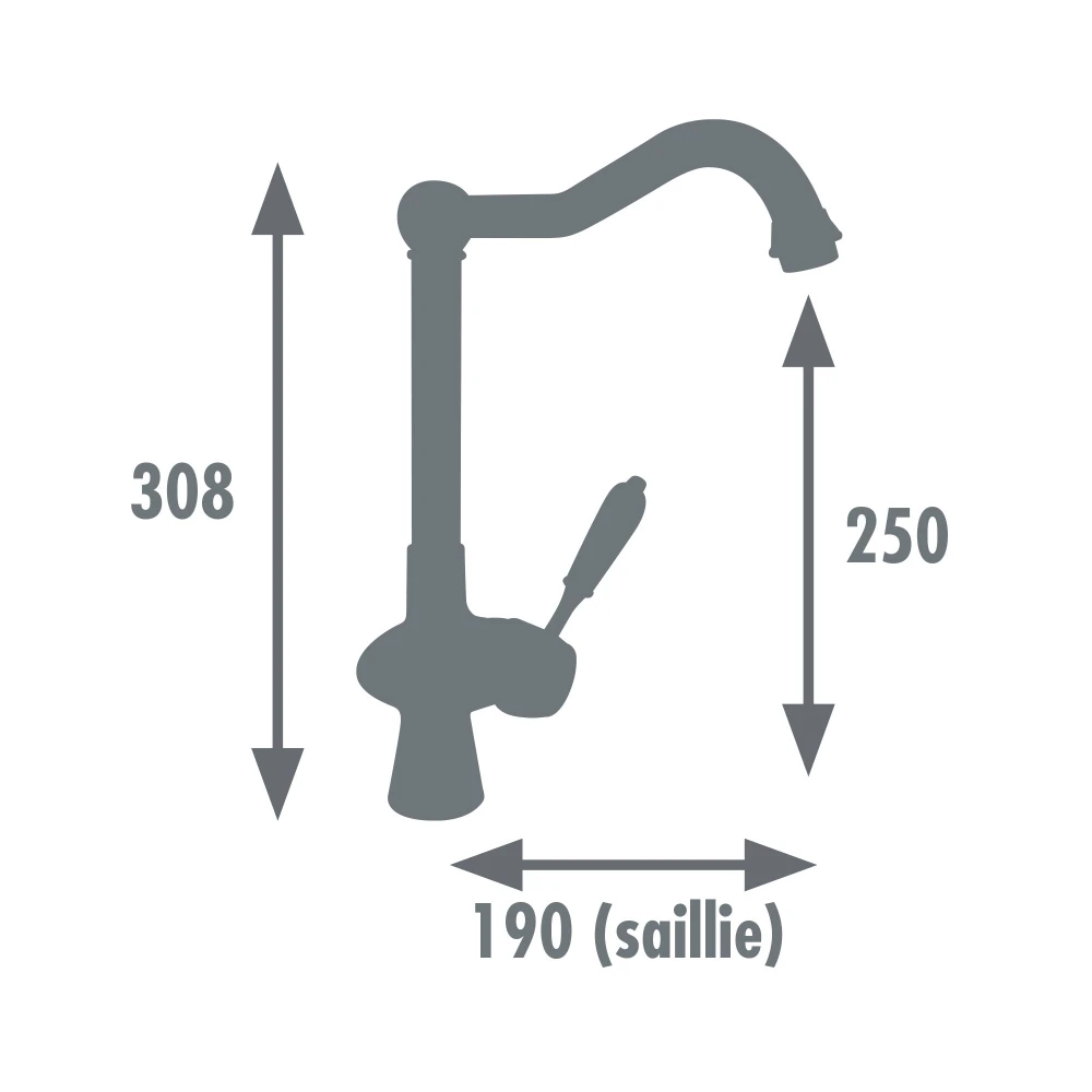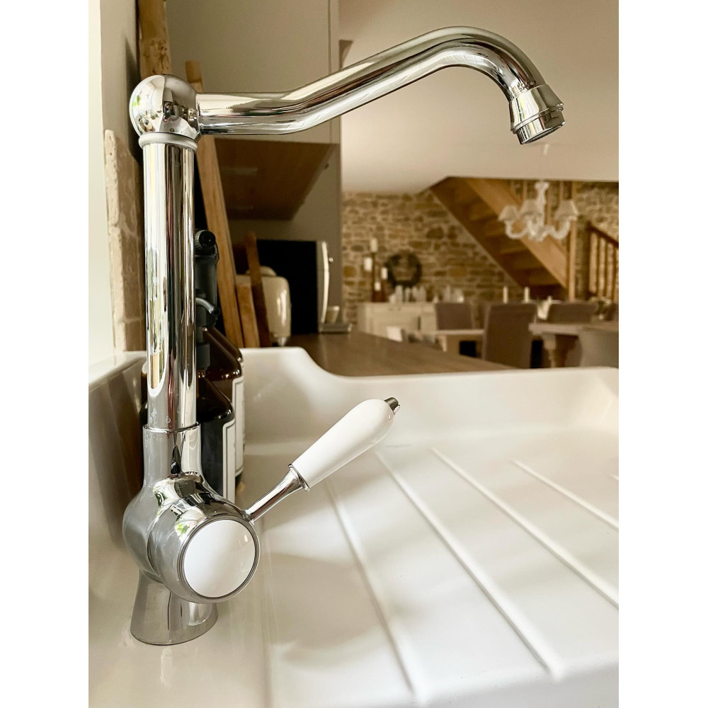 Son bec au look rétro est mobile, il permet d'orienter facilement l'écoulement de l'eau. Installation rapide grâce à son écrou de serrage fourni.