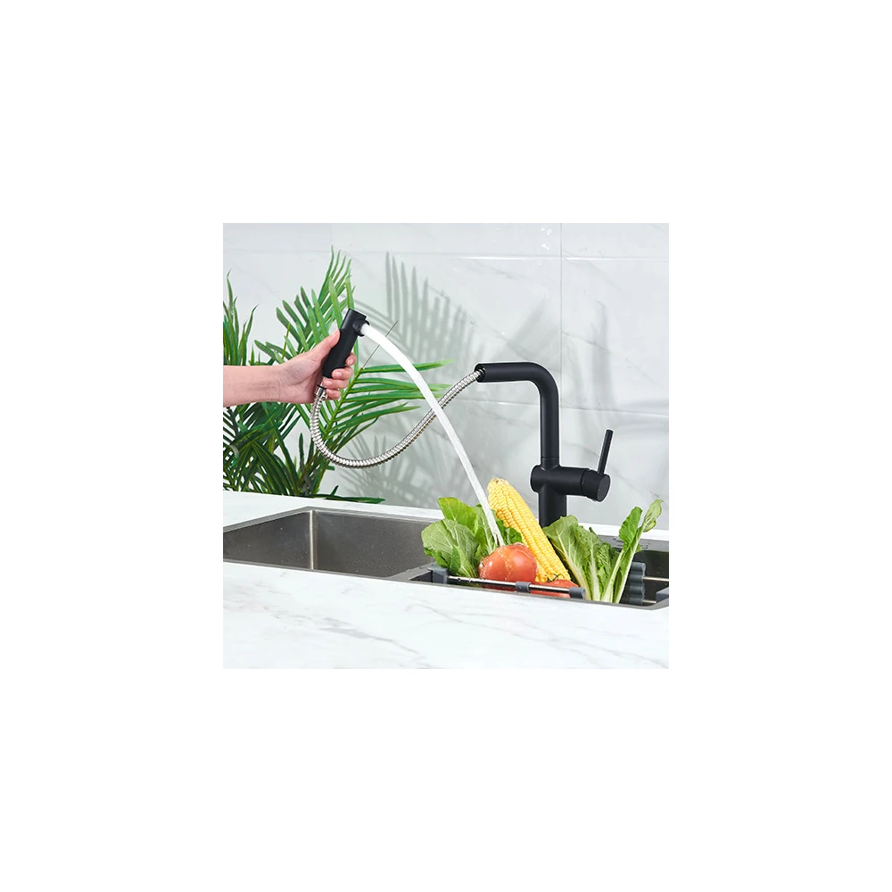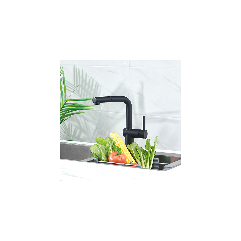 Son bec orientable est équipé d'une douchette extractible à deux jets, avec flexible de 1,20 m renforcé, idéale pour le nettoyage et le rinçage.