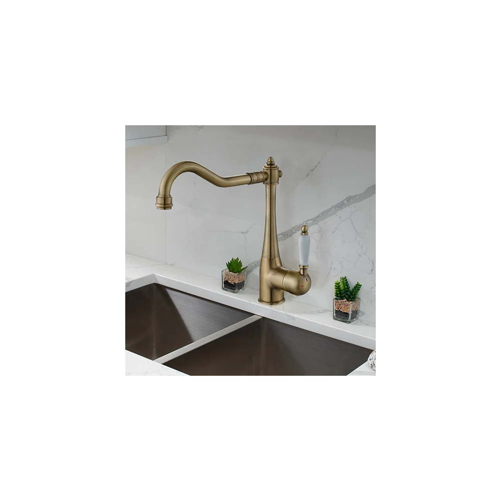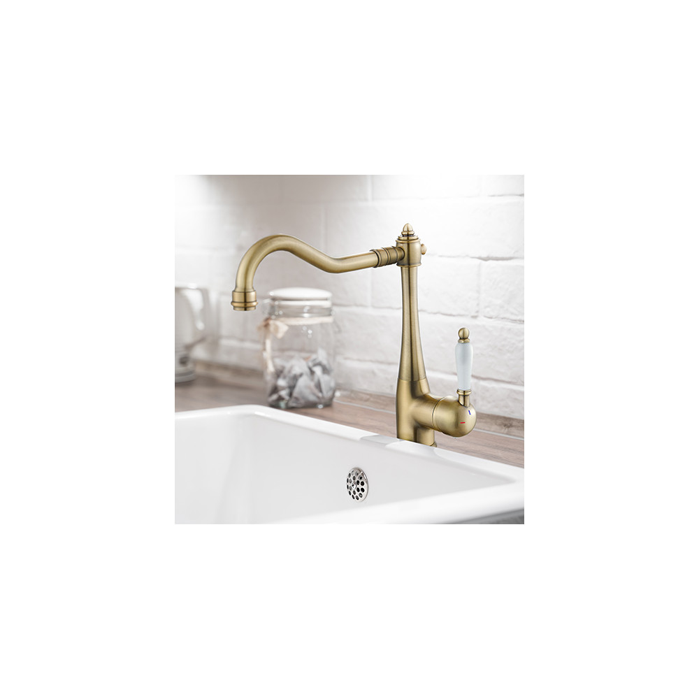 Le mitigeur évier RETRO à bec haut est équipé d'une cartouche céramique diamètre 35 mm. Il est doté d'une seule poignée qui permet de régler la température et le débit de l'eau.