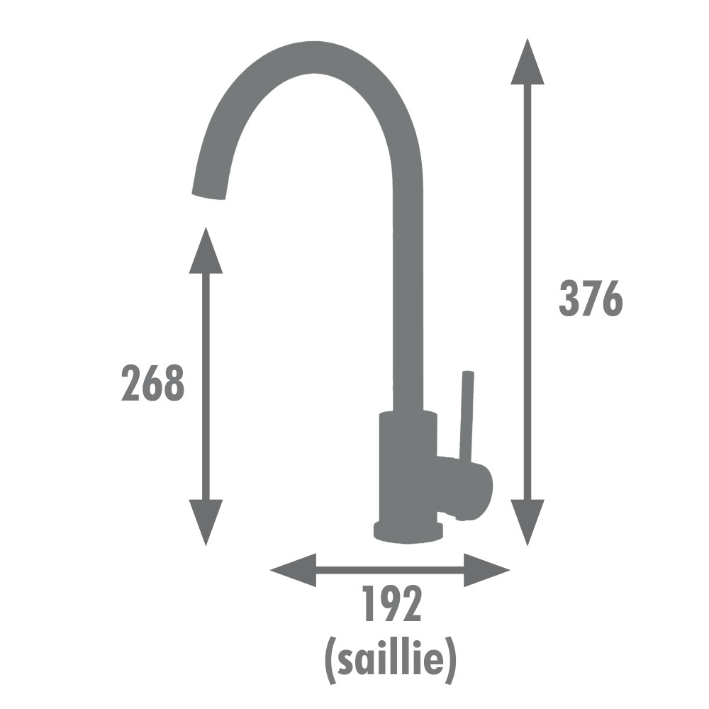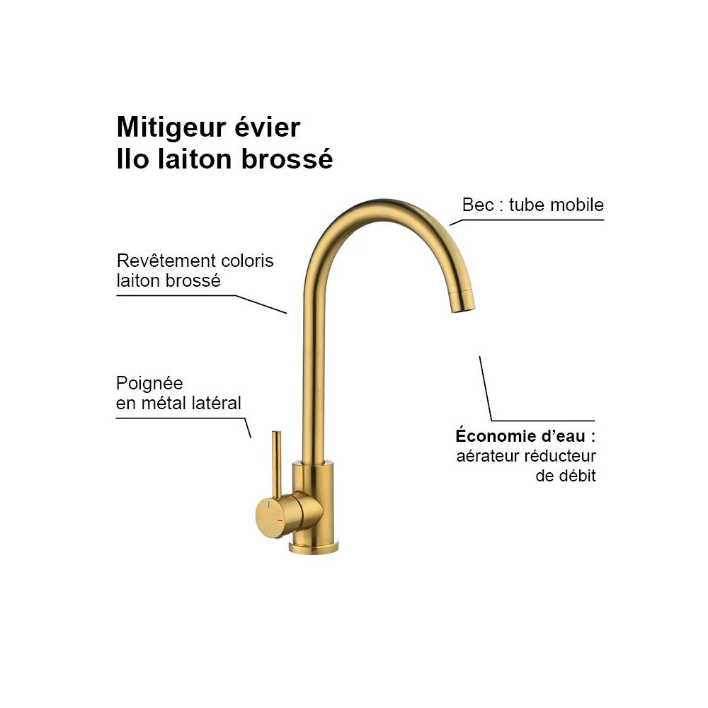 Le mitigeur évier ILO à bec haut est équipé d'une cartouche céramique diamètre 35 mm. Il est doté d'une seule poignée qui permet de régler la température et le débit de l'eau.