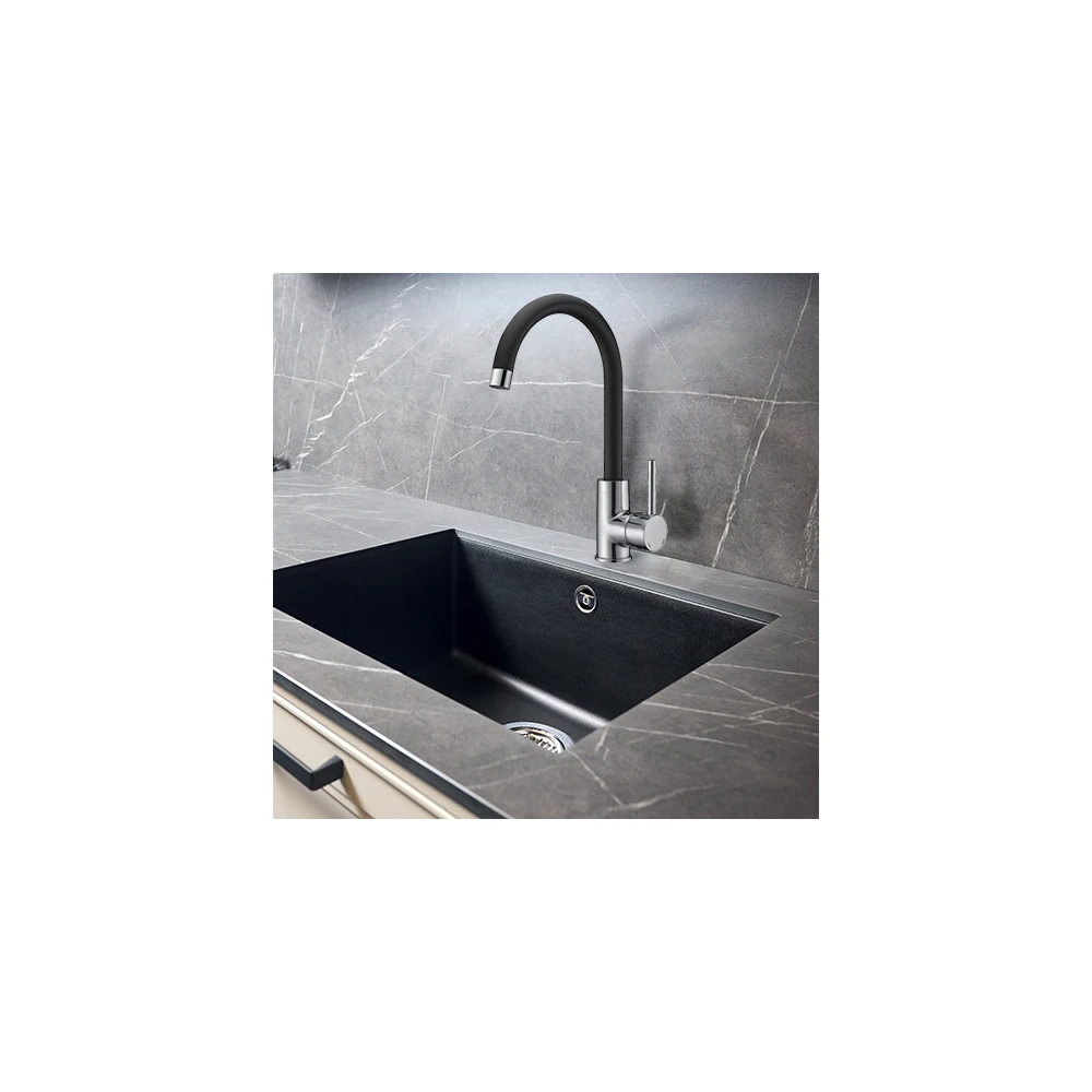 Le mitigeur évier ILO à bec haut est équipé d'une cartouche céramique diamètre 35 mm. il est doté d'une seule poignée qui permet de régler la température et le débit de l'eau.