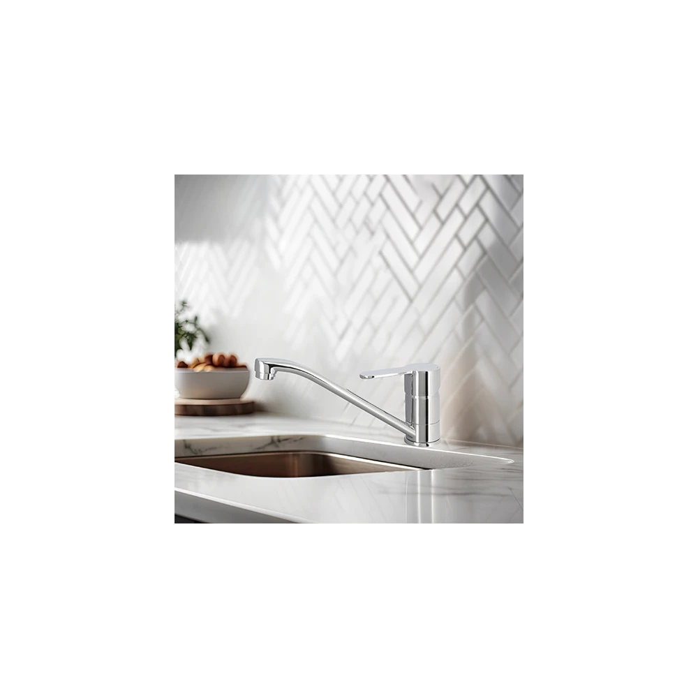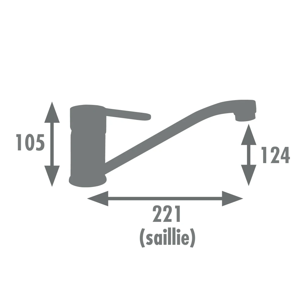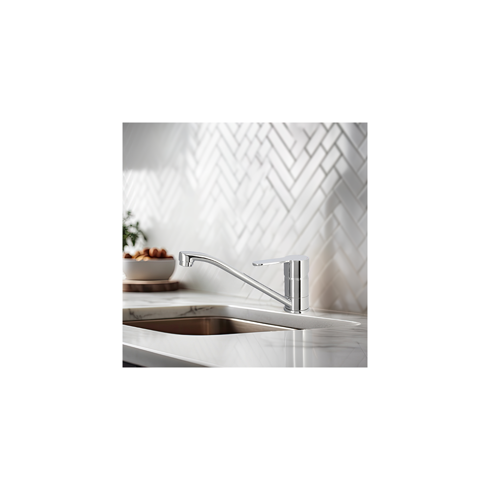 Le mitigeur évier BORN à bec bas est équipé d'une cartouche céramique diamètre 40 mm, il est doté d'une poignée qui permet de régler la température et le débit de l'eau.