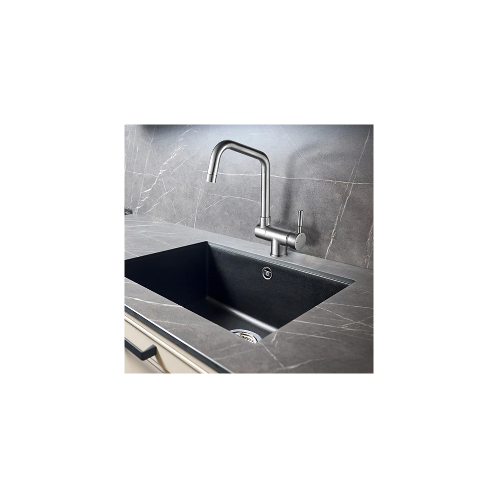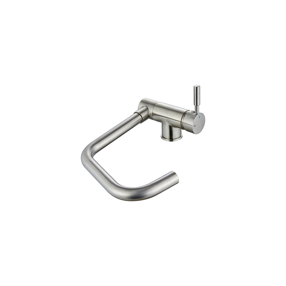 Son bec tube rabattable et orientable facilite l'usage et se plie facilement, idéal pour une installation sous fenêtre. L'embase mesure 57 mm de diamètre.