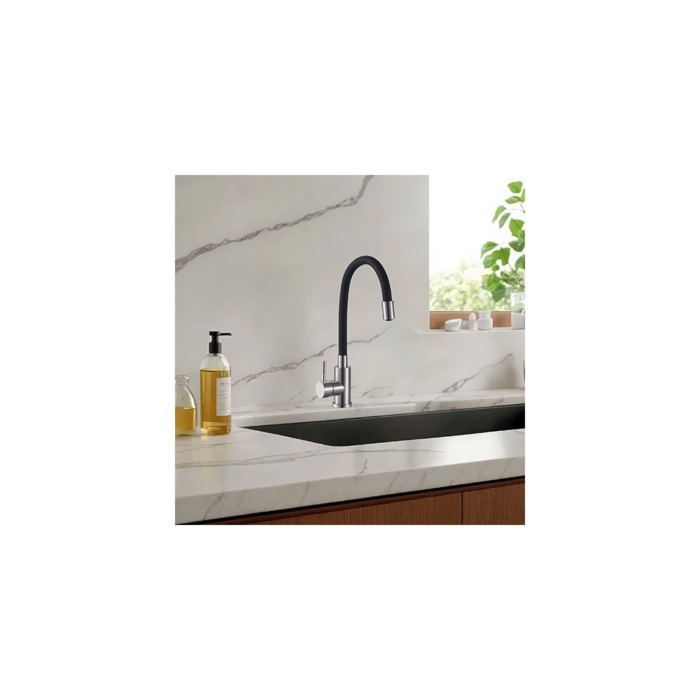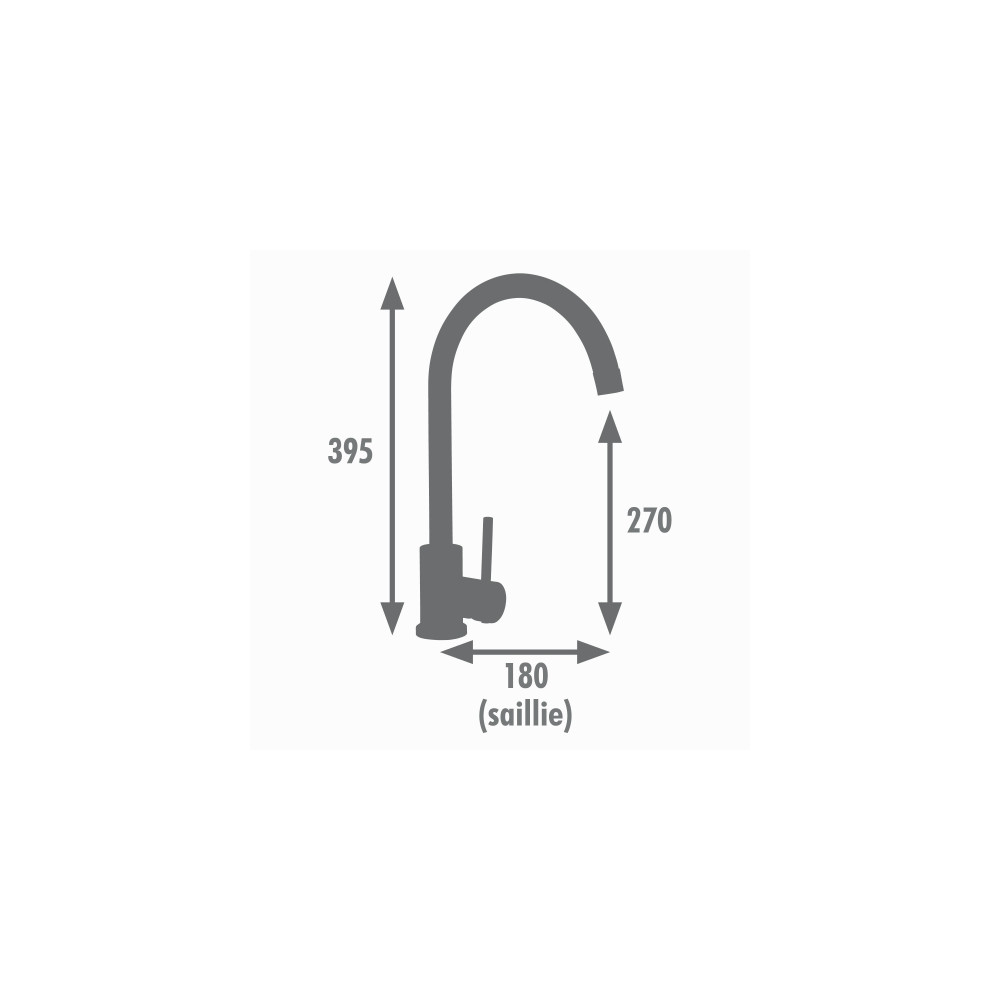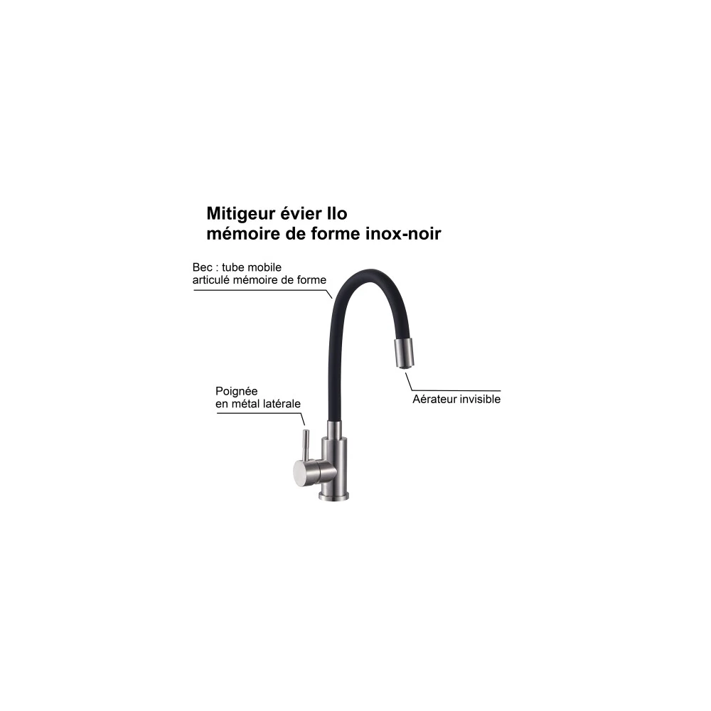 Le mitigeur évier ILO à mémoire de forme à bec haut est équipé d'une cartouche céramique diamètre 35 mm. Il est doté d'une seule poignée qui permet de régler la température et le débit de l'eau.