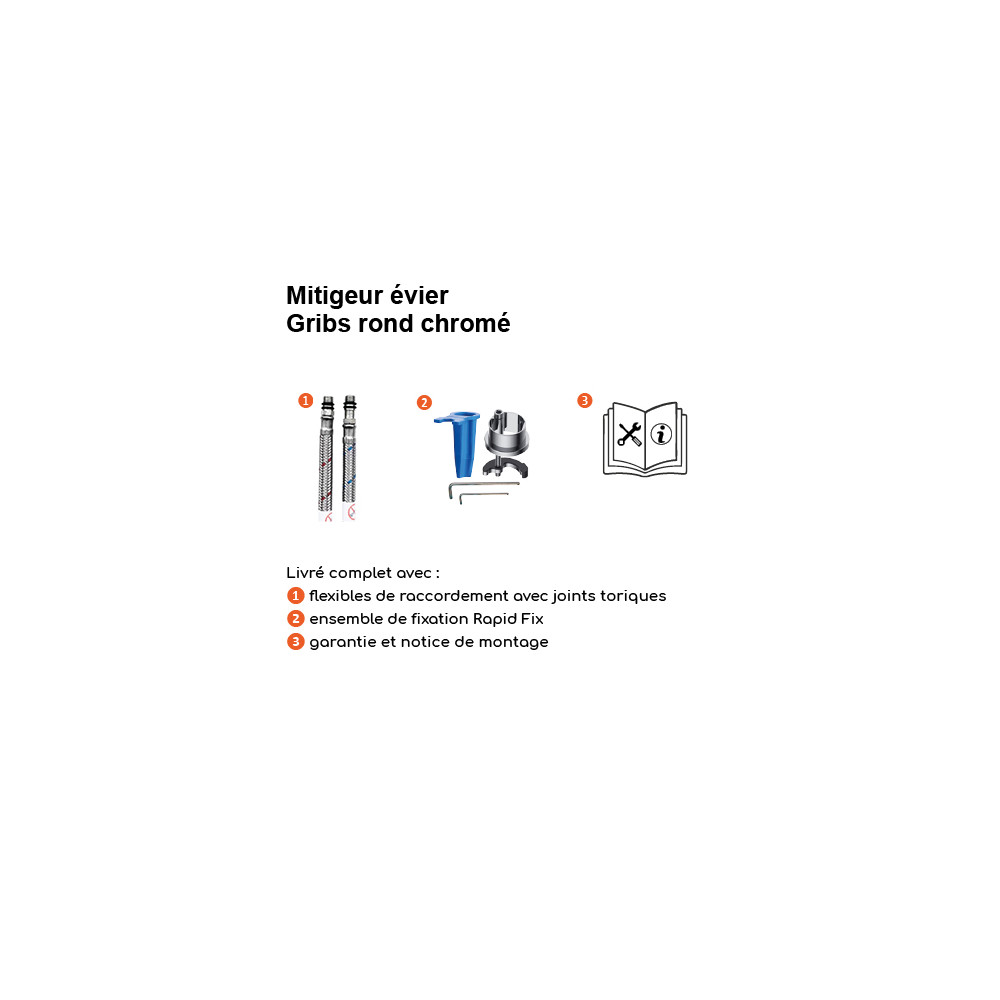 Mitigeur évier rond GRIBS RAPIDFIX - Fixation par le dessus