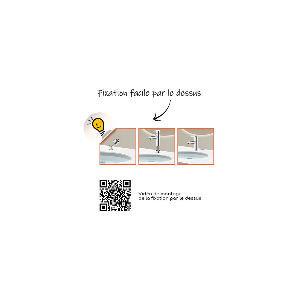 Le mitigeur Rond GRIBS s'installe facilement grâce à son système RAPIDFIX par le dessus.