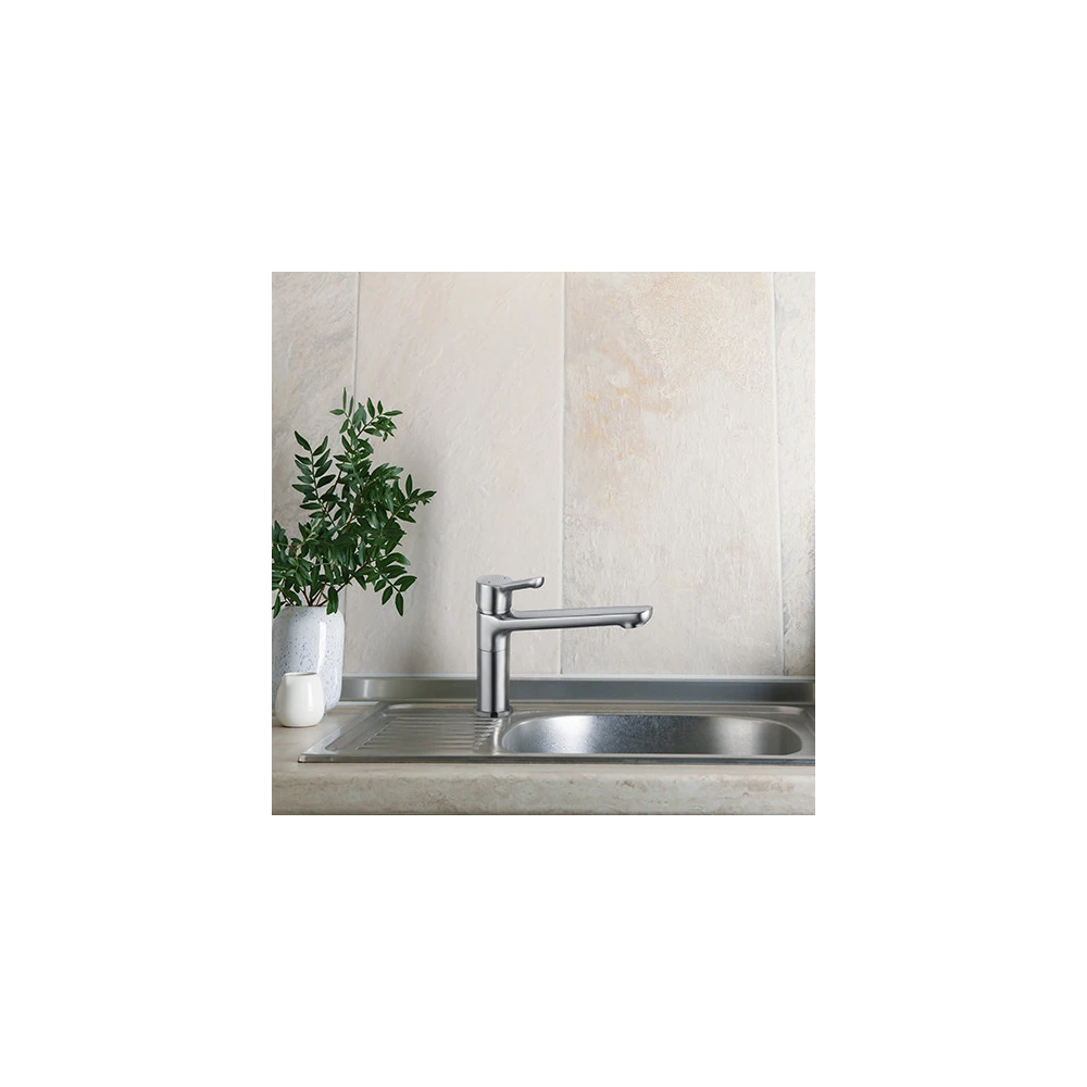 Le mitigeur évier MALOO à bec haut est équipé d'une cartouche céramique diamètre 35 mm. Il est doté d'une seule poignée qui permet de régler la température et le débit de l'eau.