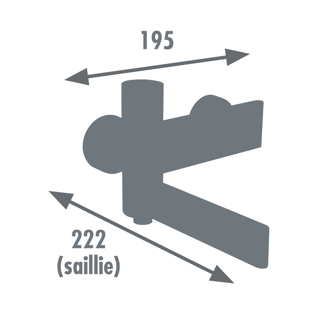 Le bec intègre un aérateur et un inverseur permettant de basculer facilement entre le mode bain et douche : il suffit d'ouvrir le bec pour la position bain ou de le rabattre pour la position douche. L'aérateur est démontable avec la clé fournie pour un entretien simplifié. L'entraxe de raccordement est de 150 mm.