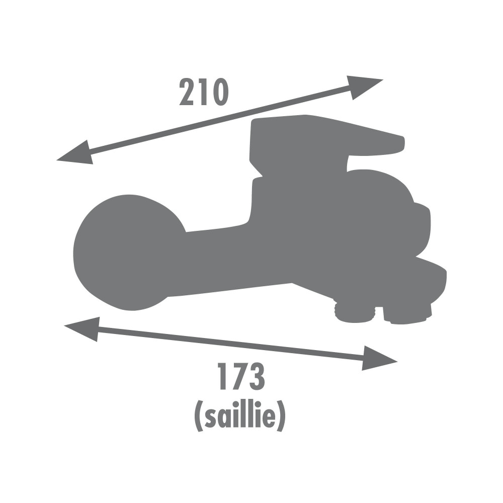 Son aérateur grand débit (28 L/min) est doté d'une grille anti-calcaire en élastomère, facile à entretenir : il suffit de frotter du doigt pour éliminer les dépôts de tartre. Le bec est équipé d'un aérateur et d'un inverseur pour basculer entre le mode bain et le mode douche. L'entraxe de raccordement est de 150 mm.