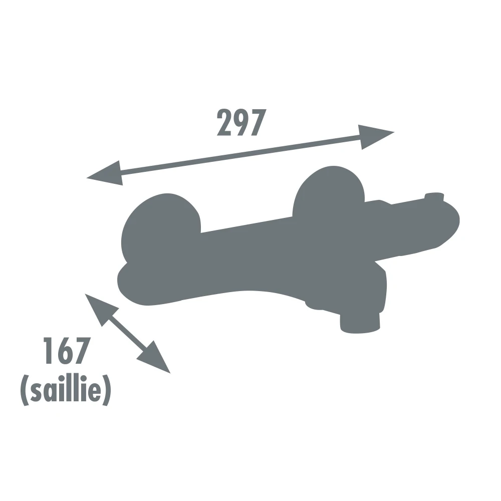 Le mitigeur thermostatique bain-douche ONYX 3 est équipé de deux poignées distinctes : l'une pour régler la température, l'autre pour ajuster le débit d'eau. Son bec intègre un aérateur grand débit (28 L/min) pour un remplissage rapide et homogène de la baignoire.