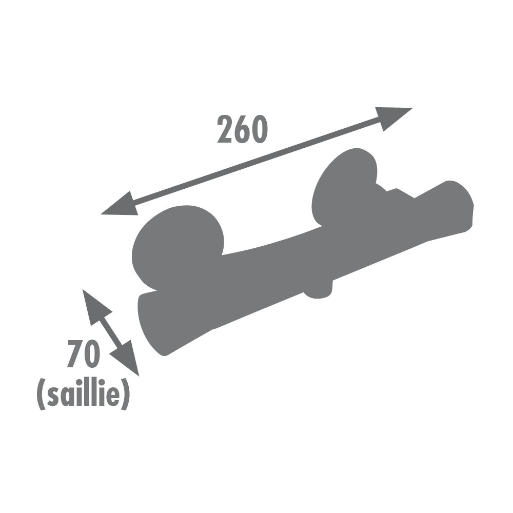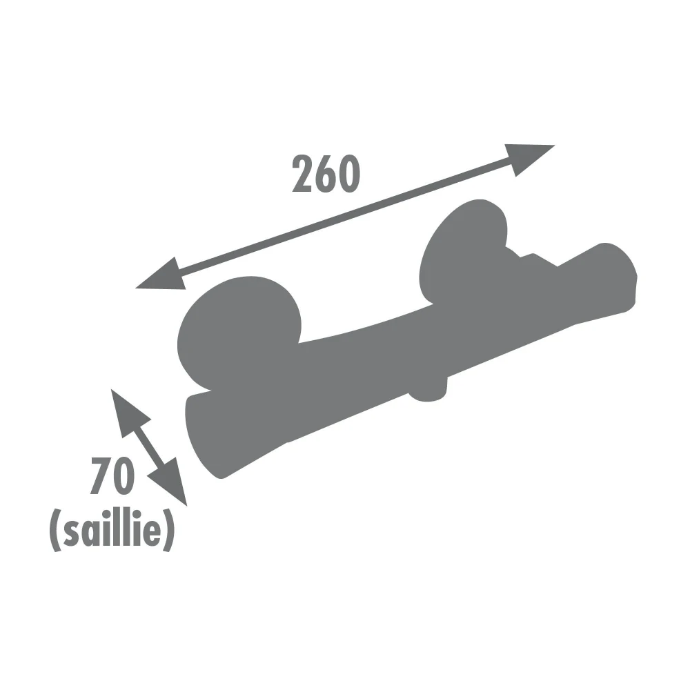 Le mitigeur thermostatique douche THERMOSUR 100 est équipé de deux poignées distinctes : l'une règle la température, l'autre contrôle le débit de l'eau. Son système anti-brûlure avec butée intégrée à 38 °C assure une sécurité optimale pour toute la famille. Son débit de 9 L/min permet une utilisation économe en eau sans compromettre la performance.